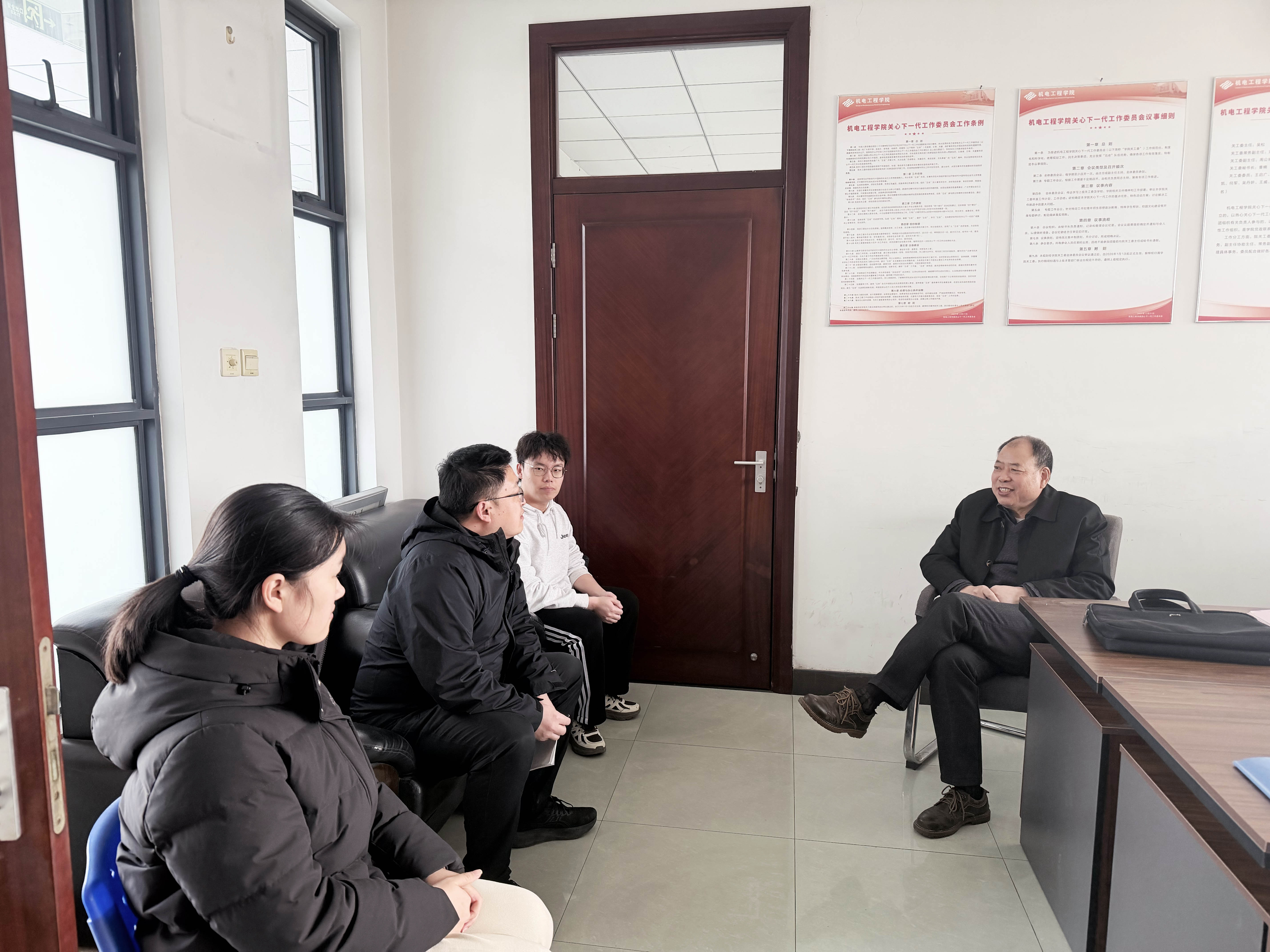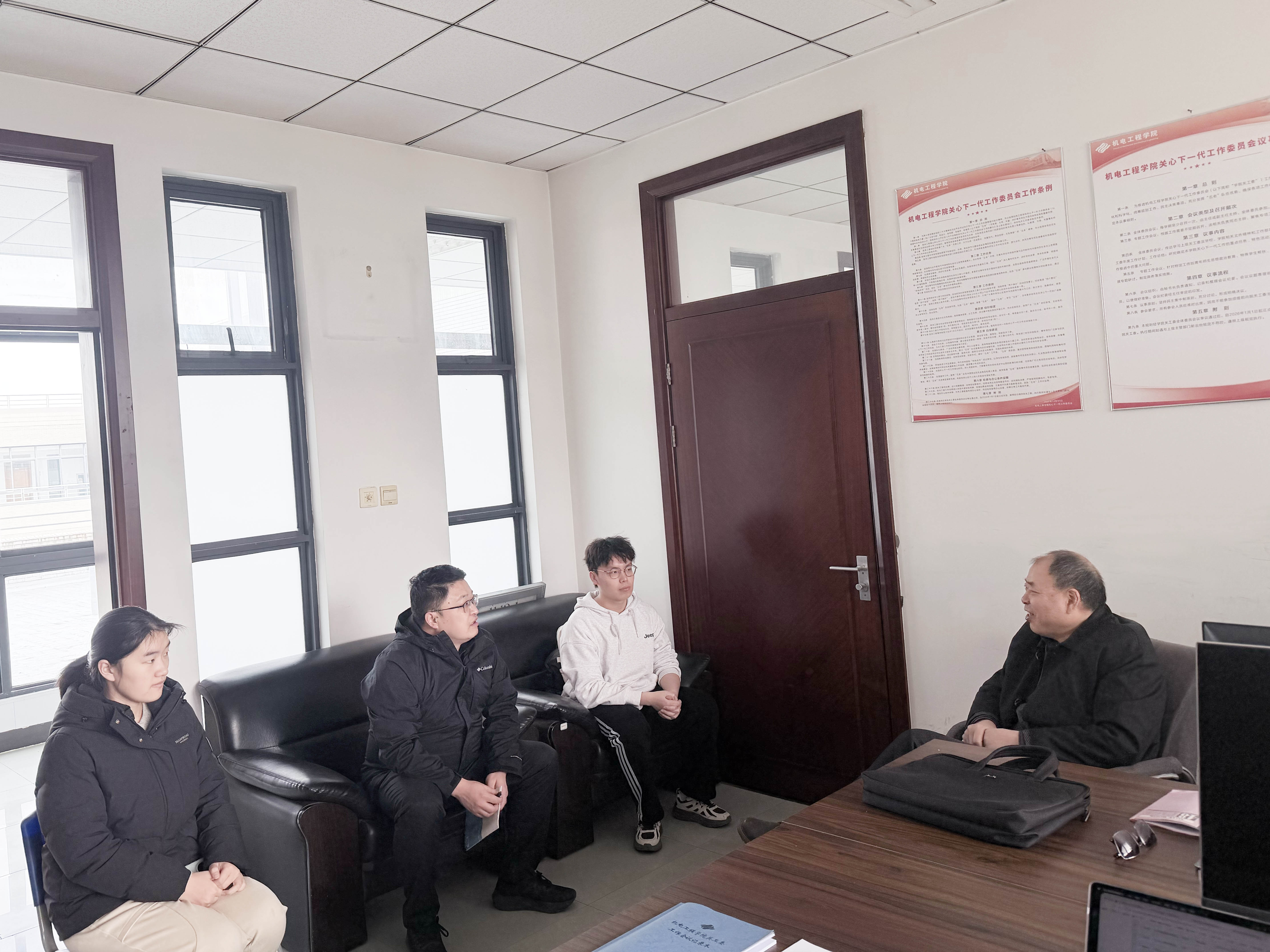 座谈会上,刘圣汉对各位青年委员积极参与和支持学院关工委工作表示感谢。他与青年教师委员王威进行了深入交流,详细询问了其在职业规划、科研进展及工作环境等方面的情况,并给予了宝贵的指导建议。在与学生委员王晨曦、袁浩源的交流中,他围绕矿山机械行业发展、学科前沿动态、寒假社会实践以及当前经济社会热点等话题,与两位同学展开了热烈讨论,耐心倾听他们的想法与感悟。还围绕学校的校史校情、传承奋斗精神等议题进行了交流。