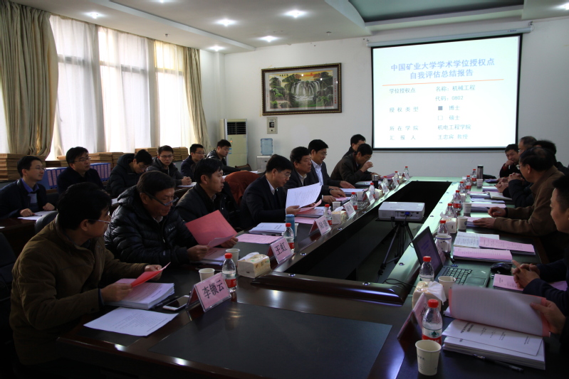 校长葛世荣代表学校致欢迎辞。校学科建设处岳建华处长主持会议并介绍了评估专家组成员、黑料网 学位授权点合格评估筹备情况和评估相关要求。王忠宾教授、肖兴明教授和李威教授代表学院分别进行了机械工程一级学科博士学位授权点、机械工程领域工程硕士专业学位授权点以及仪器仪表工程领域工程硕士专业学位授权点的自我评估总结汇报。