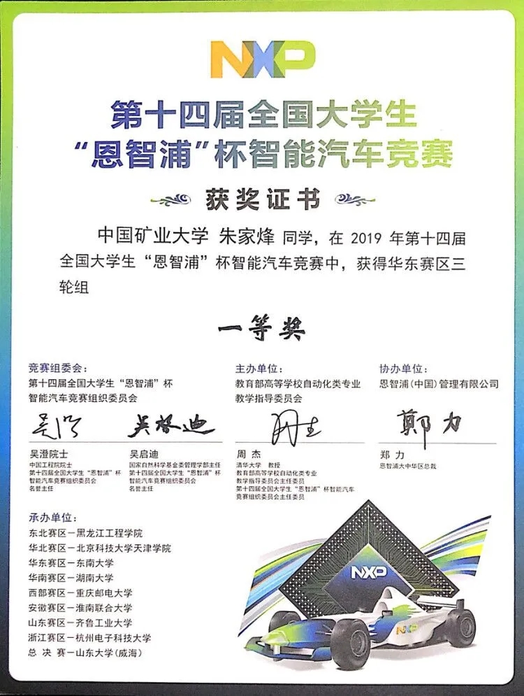 全国大学生“恩智浦”杯智能车竞赛华东赛区一等奖
