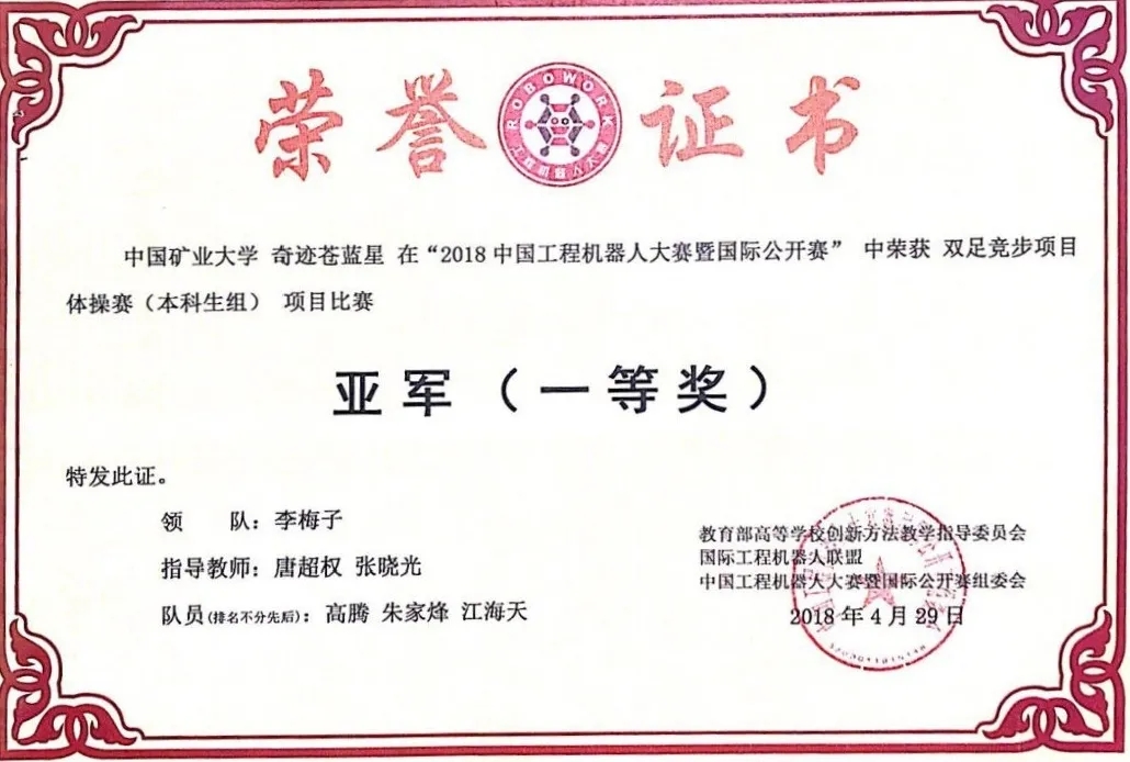 2018中国工程机器人大赛国际公开赛亚军