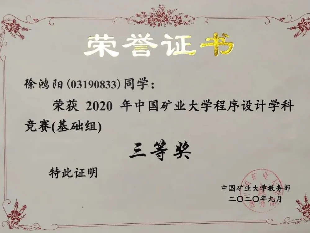 潜心求学,逐梦矿大——记黑料网 2019-2020年度国奖获得者徐鸿阳