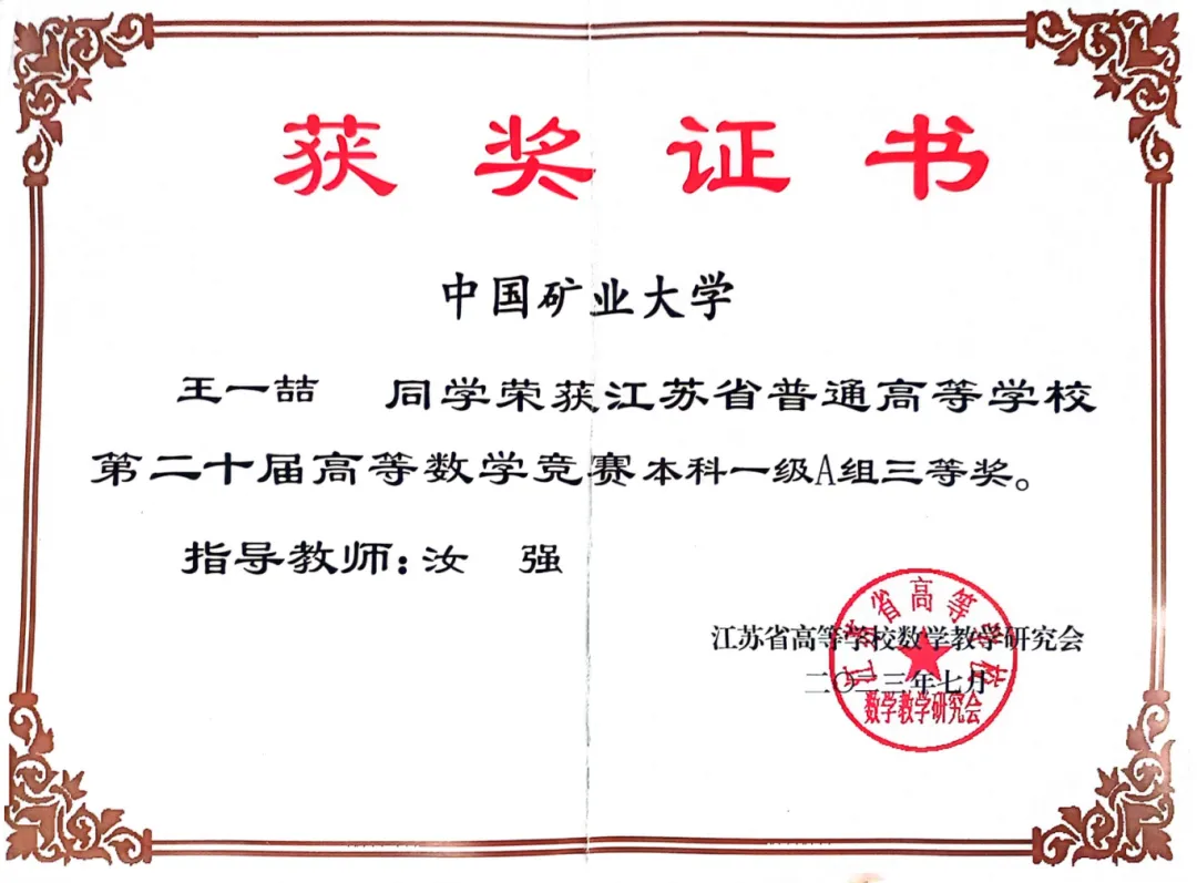 高中数学竞赛的历练,让王一喆对数学有了独到的见解,他善于从不同角度思考问题,挖掘题目间的内在联系,通过不断的实践和反思,他形成了一套有效的学习策略。王一喆深知持之以恒的重要性,并善于把复杂的任务分解成可管理的小步骤,逐一攻克。这种踏实的学习态度使他在竞赛和考试中均取得了优异的成绩。