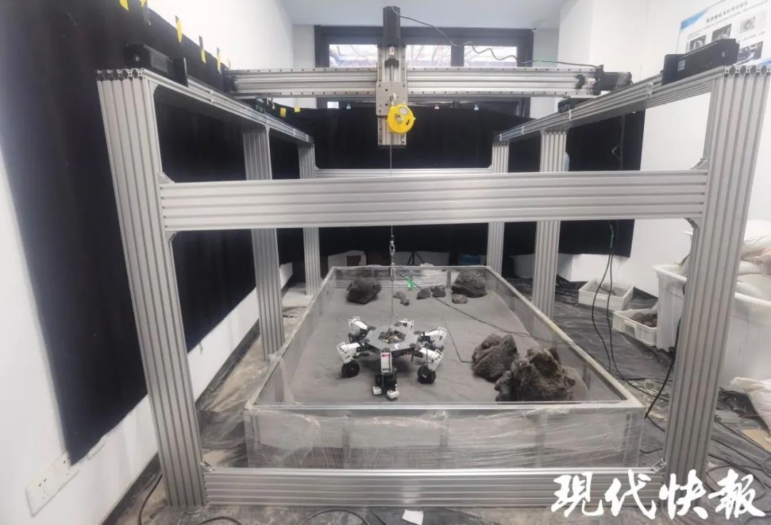 “我们之前也打听过宇航员专用的宇航实验室,做一次实验不仅花费高,而且并不完全适用于我们的机器人去实验,但如果不做实验的话,我们如何验证机器人在小行星的适应性呢?”华德正说,刘新华教授秉持着对科研的严谨性,带领团队成员利用目前从各渠道采集到的信息,提出用悬吊的方法开展实验,尽可能还原模拟行星的微重力环境。