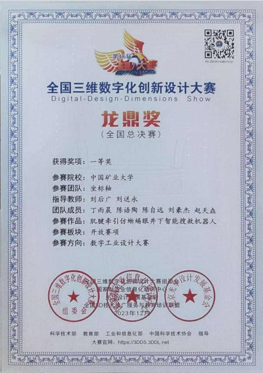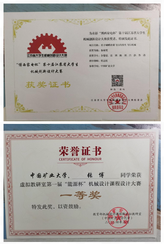 随后的两年时光,他坚守大一养成的良好学习习惯,以虔诚之心对待每一门课程。在知识的海洋里,他并非固步自封,而是持续优化学习方法,一步一个脚印朝着既定目标笃定迈进。功夫不负有心人,大学三年加权平均成绩89.20,让他在64人的专业里名列前茅。“坐地日行八万里,巡天遥看一千河”,课堂之外,他积极投身科研实践,探寻知识落地生根的广袤天地,挖掘深埋心底的科研志趣。大二那年,他勇挑大梁,申报国家级大学生创新训练项目,一头扎进仿生机械的奇妙世界。项目推进中,难题如荆棘丛生,他却视其为成长的垫脚石,全力打磨责任心,携手不同专业伙伴,凝聚团队之力,攻克重重难关,确保项目如期完成。在专业导师的悉心指引下,他的创新思维火花四溅,独立撰写的两项国家发明专利申请书,是智慧的结晶;各类创新竞赛的舞台上,也总有他大放异彩的身影,斩获中国大学生机械工程创新创意大赛、全国三维数字化创新设计大赛、江苏省机械创新设计大赛一等奖等诸多荣誉。