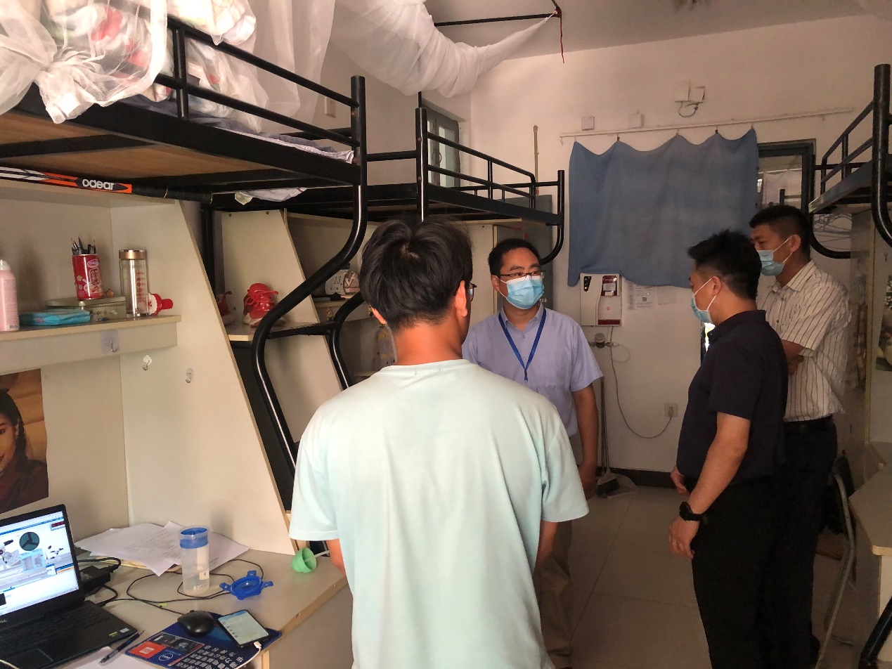 学院党委书记吴松,院长王忠宾,副院长周公博、刘送永、胡卫新,副书记王虎来到迎新接待点,检查迎新工作的准备情况,询问迎新工作进展、防疫要求落实情况,并与第一批报到的新生亲切交谈。此外,他们还来到宿舍关心留校同学网课上课情况,对宿舍的安全卫生做出提醒。