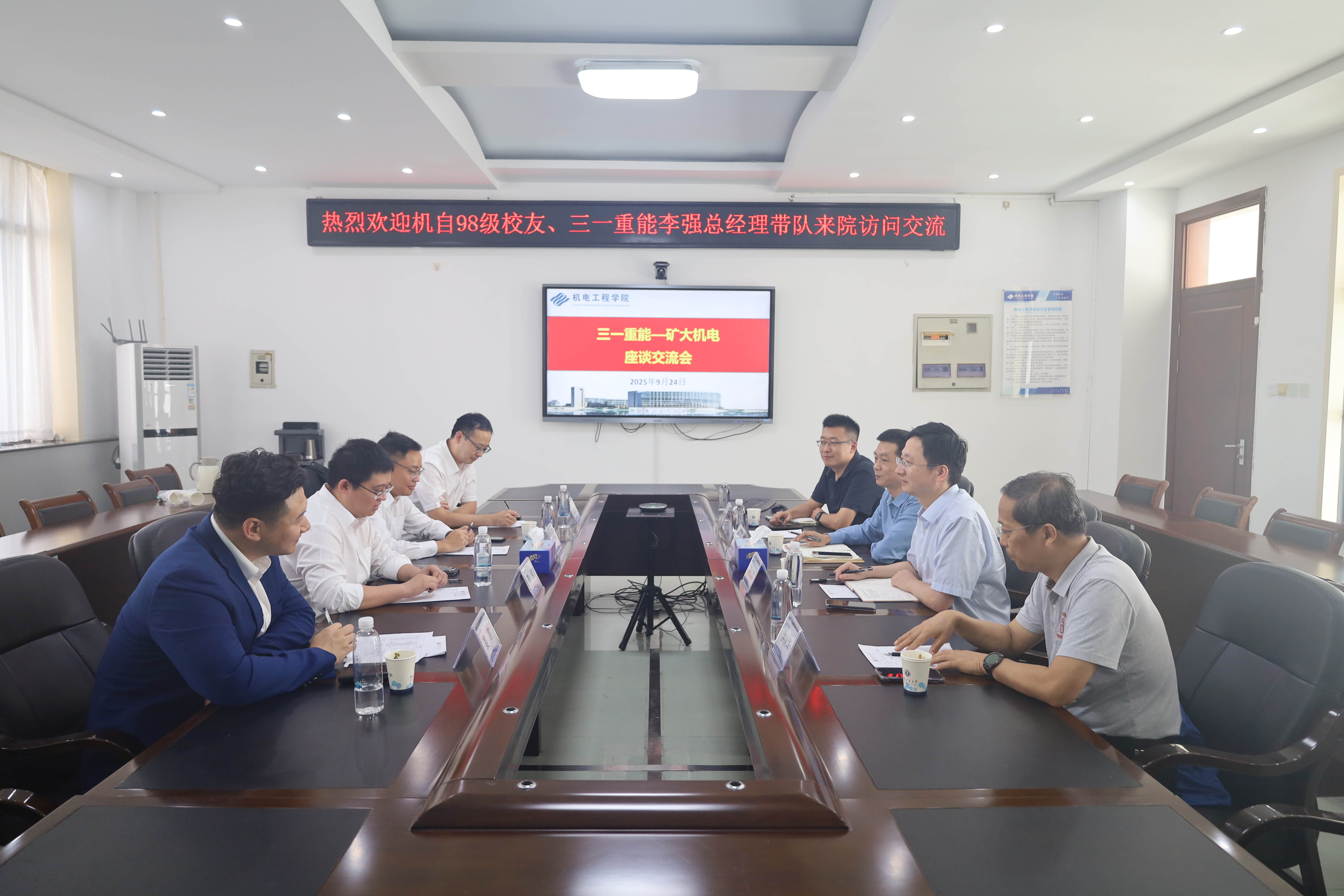为推动校企深度合作,实现毕业生高质量就业,9月24日,机自98级校友、三一重能股份有限公司李强总经理带队来院访问交流。院党委书记吴松,院长周公博,党委副书记韩福顺,工会主席洪从华参加座谈交流会。