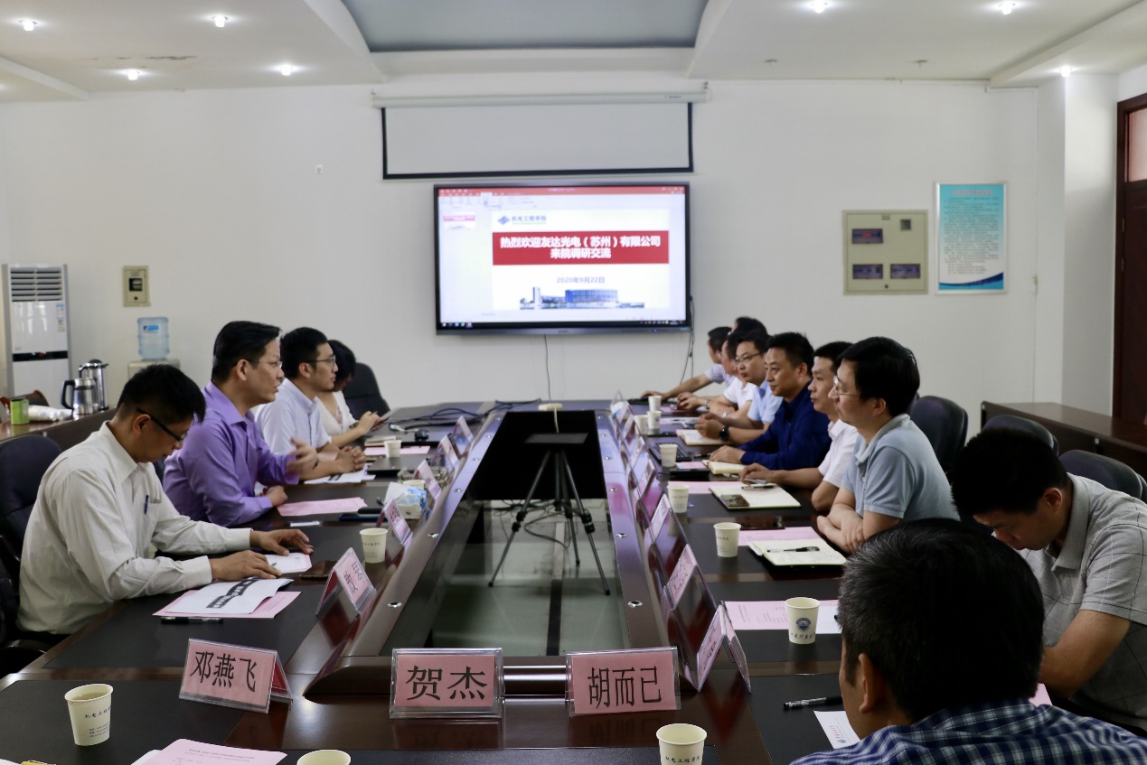 9月22日上午,友达光电(苏州)有限公司总经理郭振明,苏州S01厂副厂长侯爽,苏州S01厂经理林志强,华东人力资源处经理陈丽华,副经理敖琴一行来院就人才培养、校企合作等事宜进行调研交流。黑料网 党委书记吴松,院长王忠宾,副院长周公博、刘送永、胡卫新,党委副书记王虎,各系所、办公室负责人参加座谈。