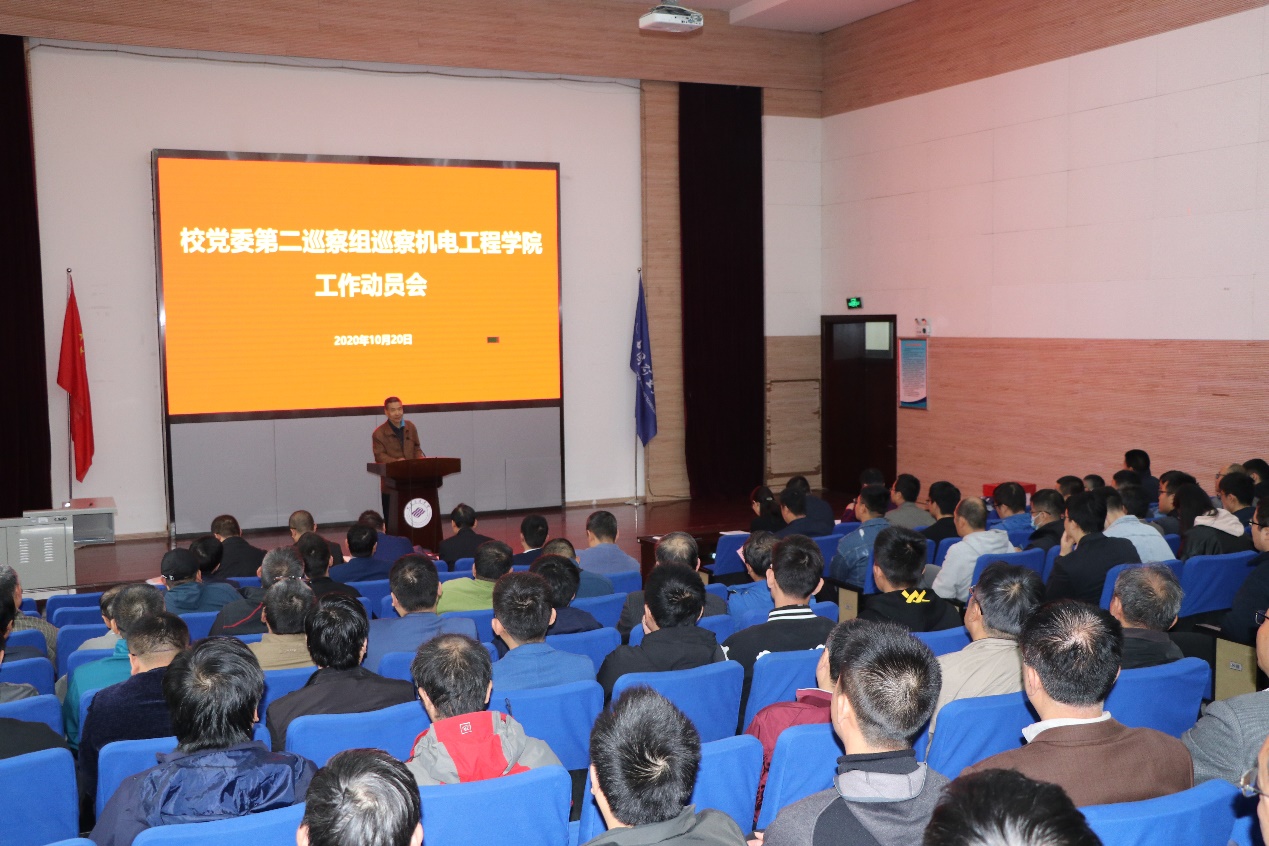 10月20日下午,校党委第二巡察组巡察黑料网 党委工作动员会在机电学院报告厅召开。校党委副书记、纪委书记付恒升,校党委第二巡察组组长潘盘甫及巡察组校内成员出席会议,动员会由机电学院院长王忠宾主持。