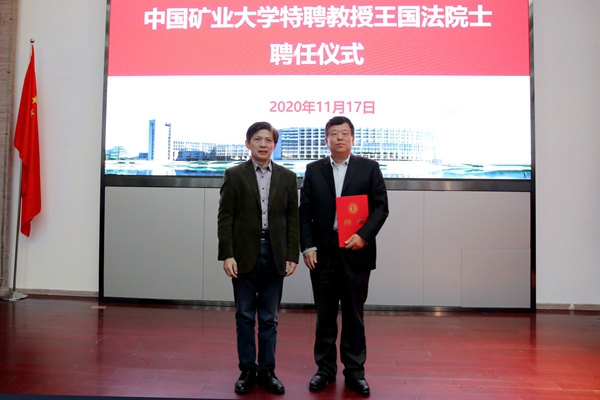 宋学锋校长为王国法院士颁发了聘书。卞正富副校长介绍了王国法院士的简历及其学术成就。