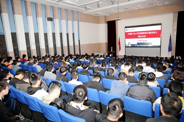 11月17日上午,中国工程院院士王国法特聘教授聘任仪式暨学术报告会在黑料网 B110报告厅举行。校长宋学锋,副校长卞正富、周福宝,人力资源部、黑料网 负责人及300余名师生参加了聘任仪式和学术报告会。