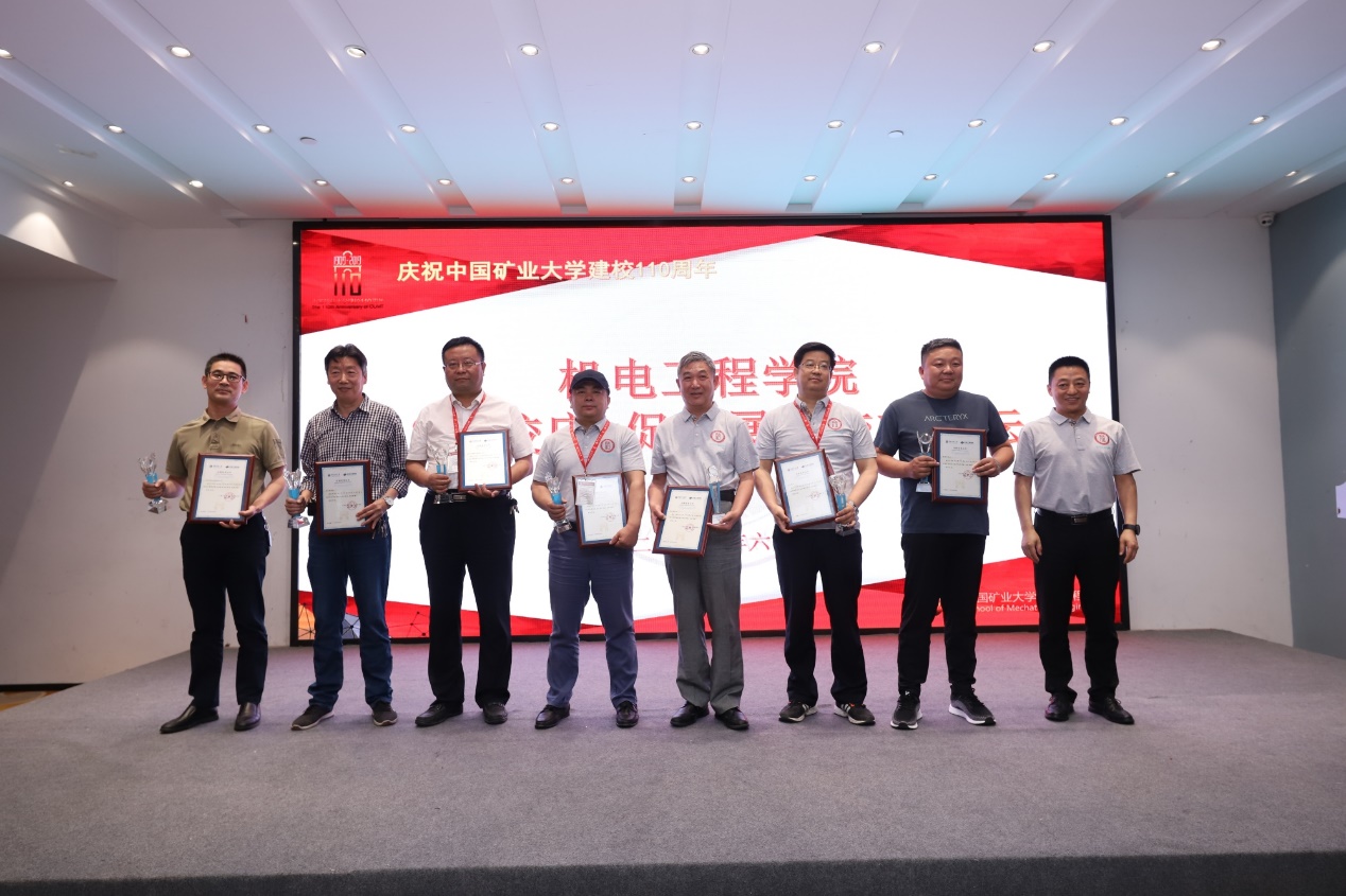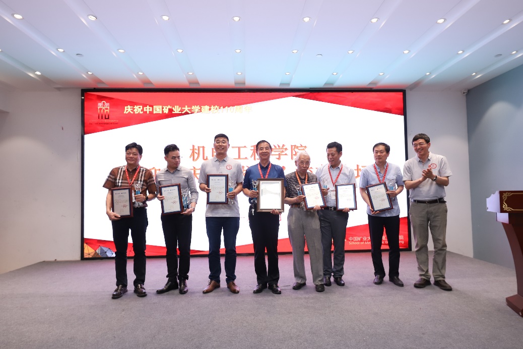 在校庆捐赠表彰环节,赵继云书记和王忠宾院长代表学院为对母校与学院建设做出突出贡献的企业届人士和校友颁发荣誉证书。常州科研试制中心有限公司姜汉军与王眉林、无锡巨通矿山机械有限公司刘刚、昆明晒晚文化传播有限公司韩峰、徐州徐工基础工程机械有限公司张中海、山东邦迈智能科技有限公司杨韬仁、徐州科光集团公司王秀元、北京中矿宾馆罗阳彬、徐州天科机械制造有限公司刘传令、上海依和电力科技有限公司晏怀伟、上海首坤智能科技有限公司刘猛军以及学院教师王雷、李浩平、杨建奎、黎浩明等上台领取了捐赠荣誉证书及捐赠纪念奖杯。最后,来自学院2017级、2018级的本科生代表为校友们献唱《中国矿大 我的家》,重燃了广大校友对母校的回忆和爱校荣校之情。