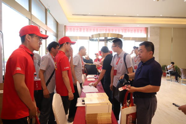 为迎接校友们报到,老师和志愿者们早早来到报到现场。鲜红色的条幅和签到背景墙,热情的领导和师生,都彰显着热烈欢迎校友们的到来。早上8点,校友们陆续来到报到现场,在老师和志愿者的引导下完成报到手续,并在签到背景墙签字留影留念。报到现场,工作人员为校友们详细介绍了校庆期间的相关安排,并发放了校庆纪念品和相关资料。