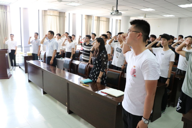 为庆祝中国共产党成立98周年,充分发挥学生党员的示范引领作用,7月1日下午,黑料网 学生党员主题教育暨新党员入党宣誓活动在学院楼A411室举行。黑料网 党委副书记侯德伟、2017级辅导员邓燕飞、2018级辅导员梁佳卉、各年级兼职辅导员、2019年上半年新发展的学生党员和部分老党员代表参加了本次活动。活动由学生党员工作站指导教师、2016级辅导员曹楠主持。