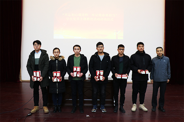 在启动仪式上,与会人员通过重温《东方红》缅怀毛泽东诞辰125周年。付恒升书记向学生党支部书记代表授予主题教育活动学习辅导书籍。赵继云书记宣读了黑料网 党委《关于举办“不忘初心强党性,牢记使命勇担当”学生党员主题教育活动的通知》文件。