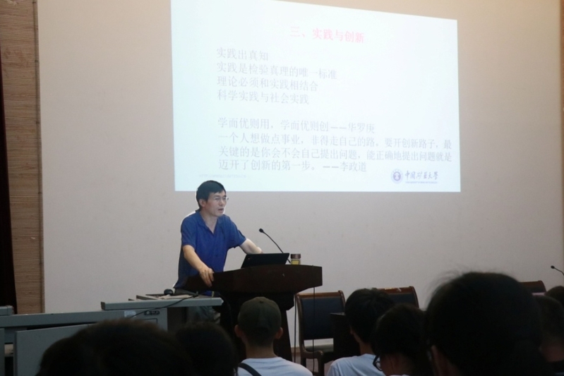 讲座开始,由刘后广教授为在座的2018级新生进行题为“大学生活的‘正确打开方式’”的主题报告。刘后广教授从目标与规划、如何有效执行等方面展开,加以实例的分析,生动描述了优秀的大学生的大学生活是如何度过的。刘教授的讲话向同学们展示了大学生活的丰富与精彩,赢得了同学们热烈的掌声。