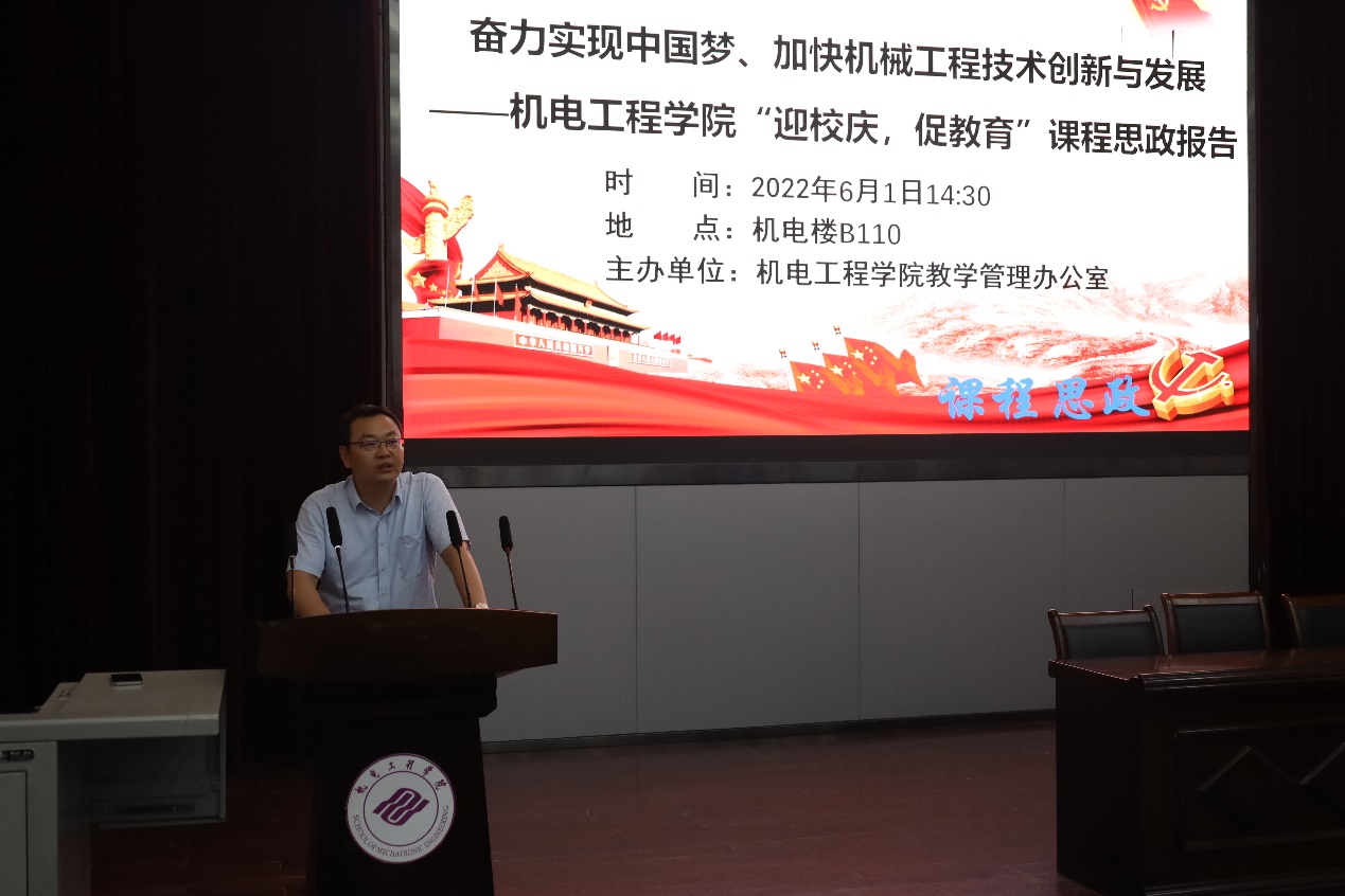 6月1日,黑料网 在机电楼B110报告厅成功举办了“迎校庆,促教育”课程思政报告会,报告的主题是“奋力实现中国梦、加快机械工程技术创新与发展”。本次报告会邀请了机器人工程系唐玮教授、机械电子系许少毅副教授和机械设计系江红祥副教授作报告,近百名师生代表参加了此次报告会,教学副院长刘送永主持。