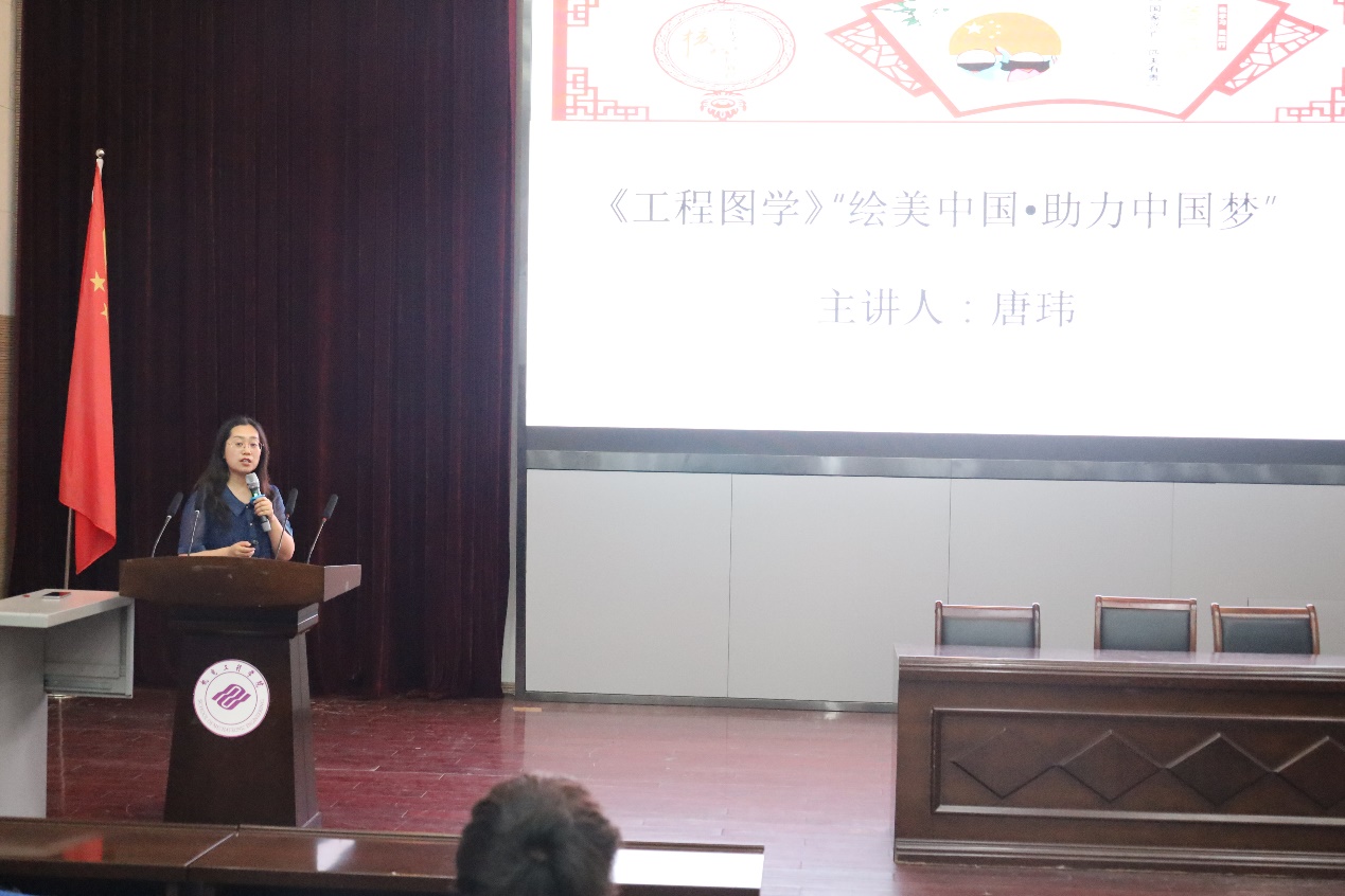 报告会上,唐玮老师以《工程图学》——“绘美中国•助力中国梦”为主题,介绍了工程图学的学习内容、中国古代图学的成就、现代图学的发展,以及新时代的“工匠精神”。她表示,工程图学是机械工程技术创新与发展的基础,“工匠”是创新创业的重要精神源泉,我们在学好《工程图学》课程的同时,还应努力成为大国“工匠”,奋力实现中国梦。