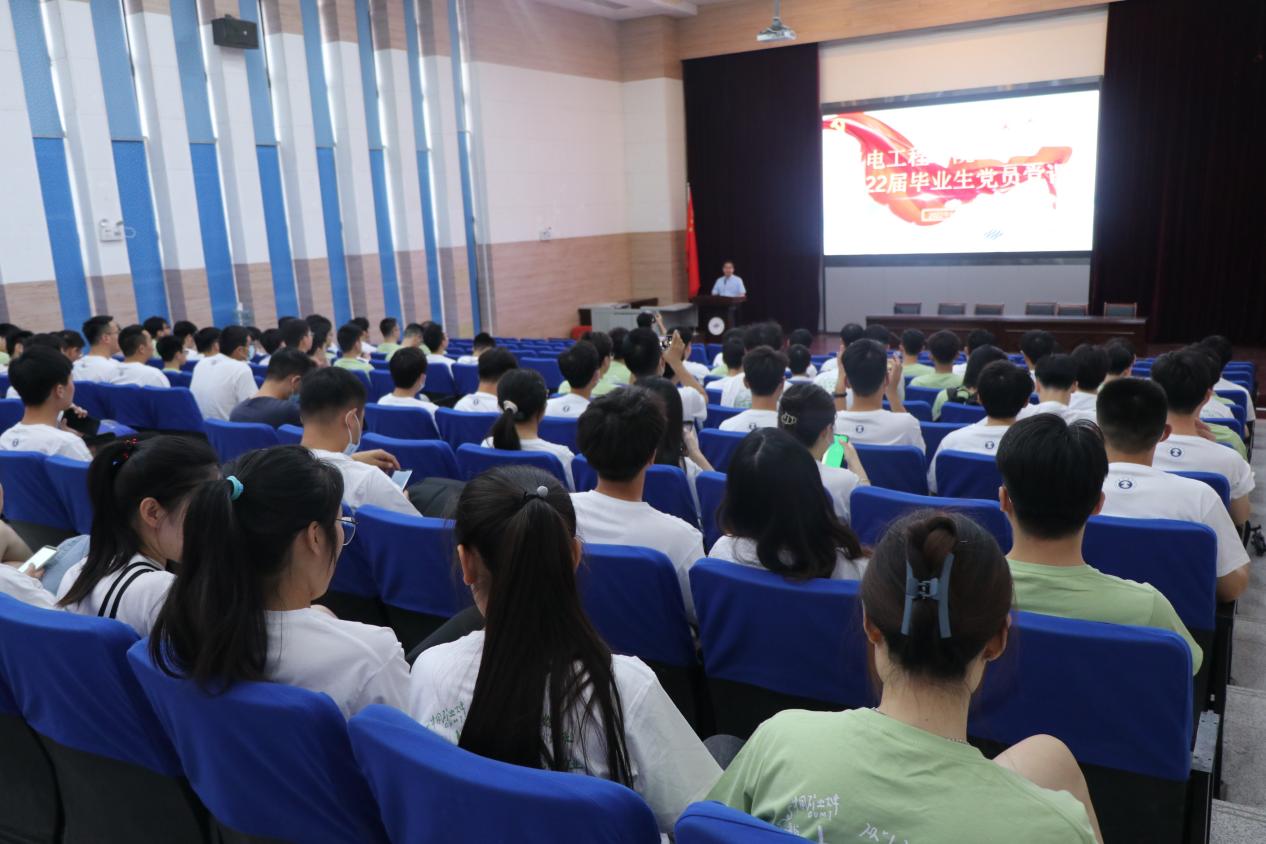 为加强毕业生党员教育,强化党员意识,引导和激励广大毕业生党员坚定理想信念,以饱满的热情走向新的学习单位和工作岗位,6月9日上午,黑料网 2022届毕业生党员专题党课在学院B110报告厅举行,院党委副书记王虎为2022届全体毕业生党员上了毕业前的最后一次党课。