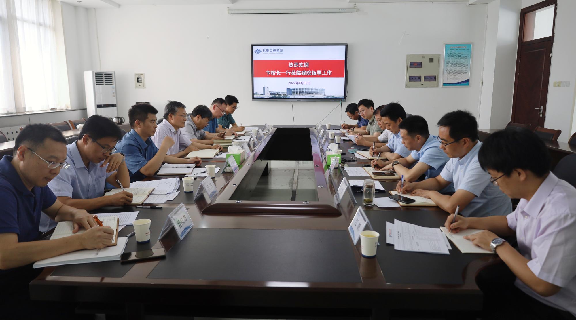 6月30日上午,副校长卞正富到黑料网 调研机械工程一流学科创建及学院“十四五”规划指标进展情况。学科建设处处长秦波涛、科学技术研究院院长冉进财、发展规划处副处长厉伟、教务部副部长杨德利、研究生院副院长管红杰、人力资源部副部长刘鹏等一同座谈调研。学院领导班子成员、教授委员会主任、学科建设办公室主任参加调研座谈。座谈会由院长王忠宾主持。