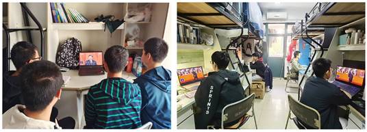 学生在宿舍自行收看开幕会