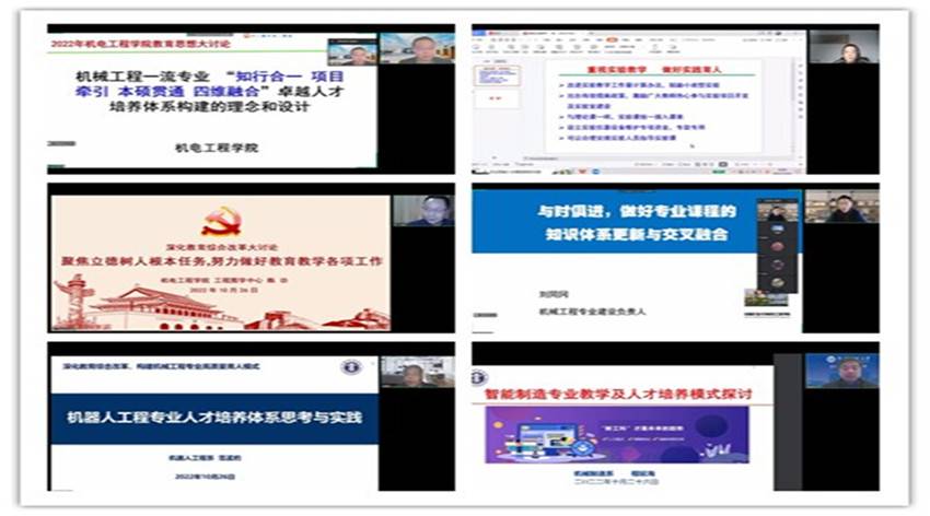 根据《“深化教育综合改革,构建高质量教育体系”黑料网 2022年教育思想大讨论实施方案》的要求,10月26日下午,黑料网 举行了线上“教育思想大讨论”总结报告活动。会议邀请了副校长卞正富、校教师教学发展中心办公室主任孙林雪以及尹文宣老师和韩奎老师两位督导专家参加。院党委书记吴松、院长王忠宾、科研副院长周公博以及设计系主任谢方伟、电子系主任刘同冈、制造系主任程延海、机器人系主任范孟豹、工程图学中心主任陈功、实验室主任杨善国、党政办主任邱洁、学工办主任邓燕飞、教学办主任张伟参加了会议。会议由教学副院长刘送永主持。