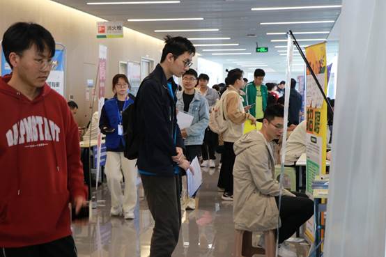 招聘会上企业和学生进行交流