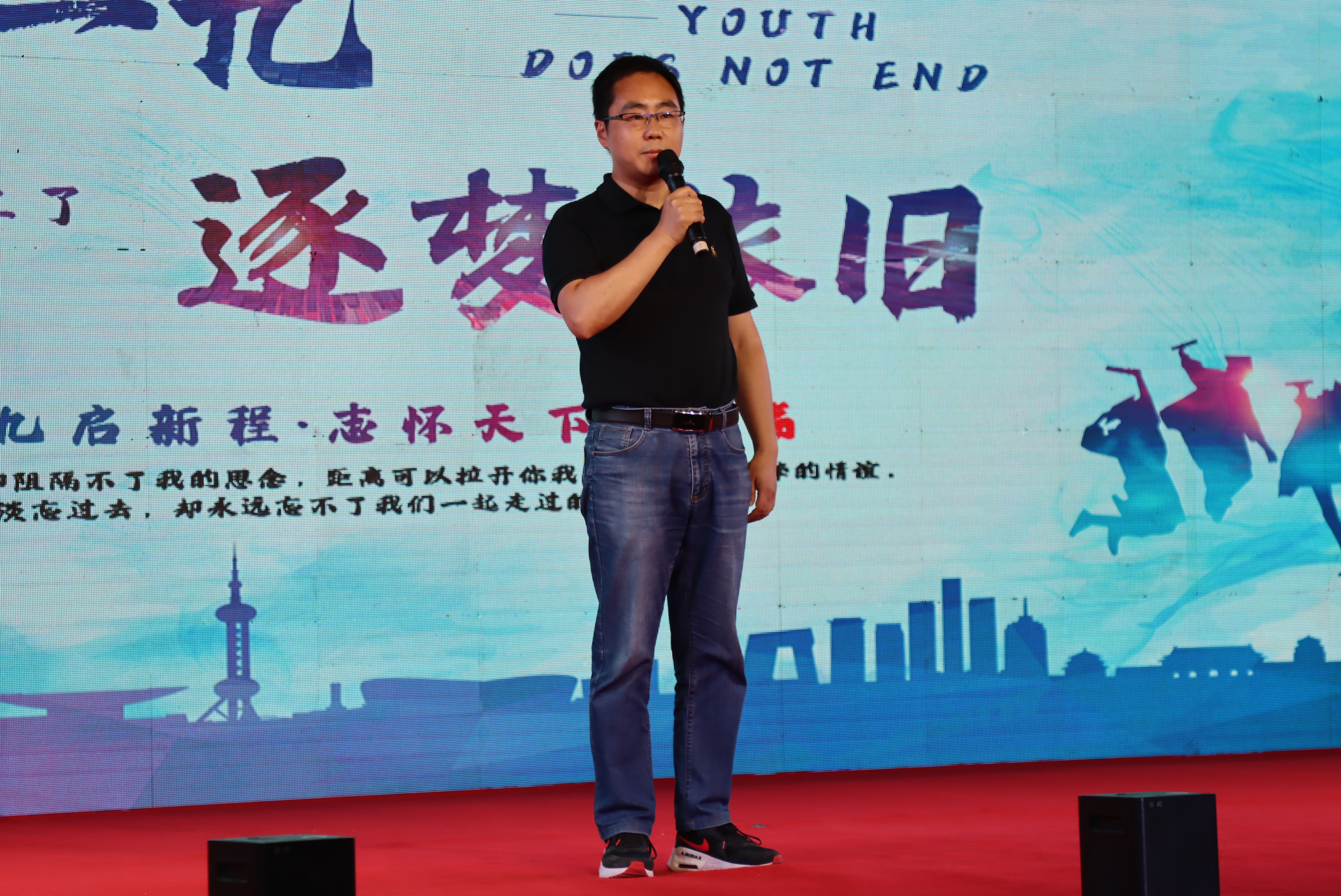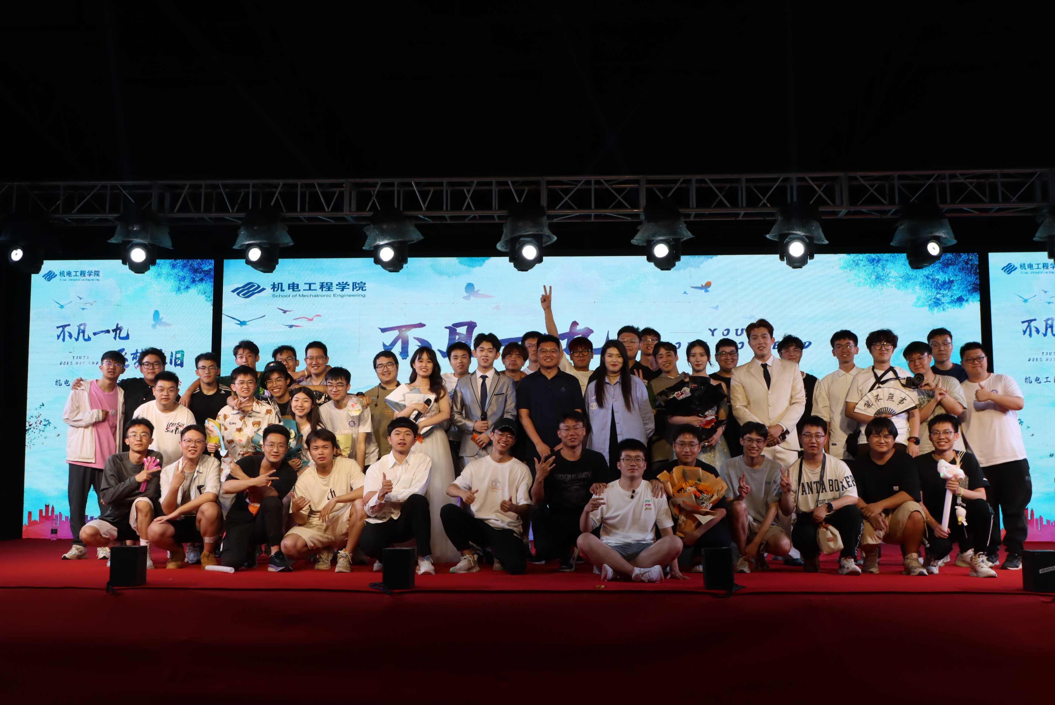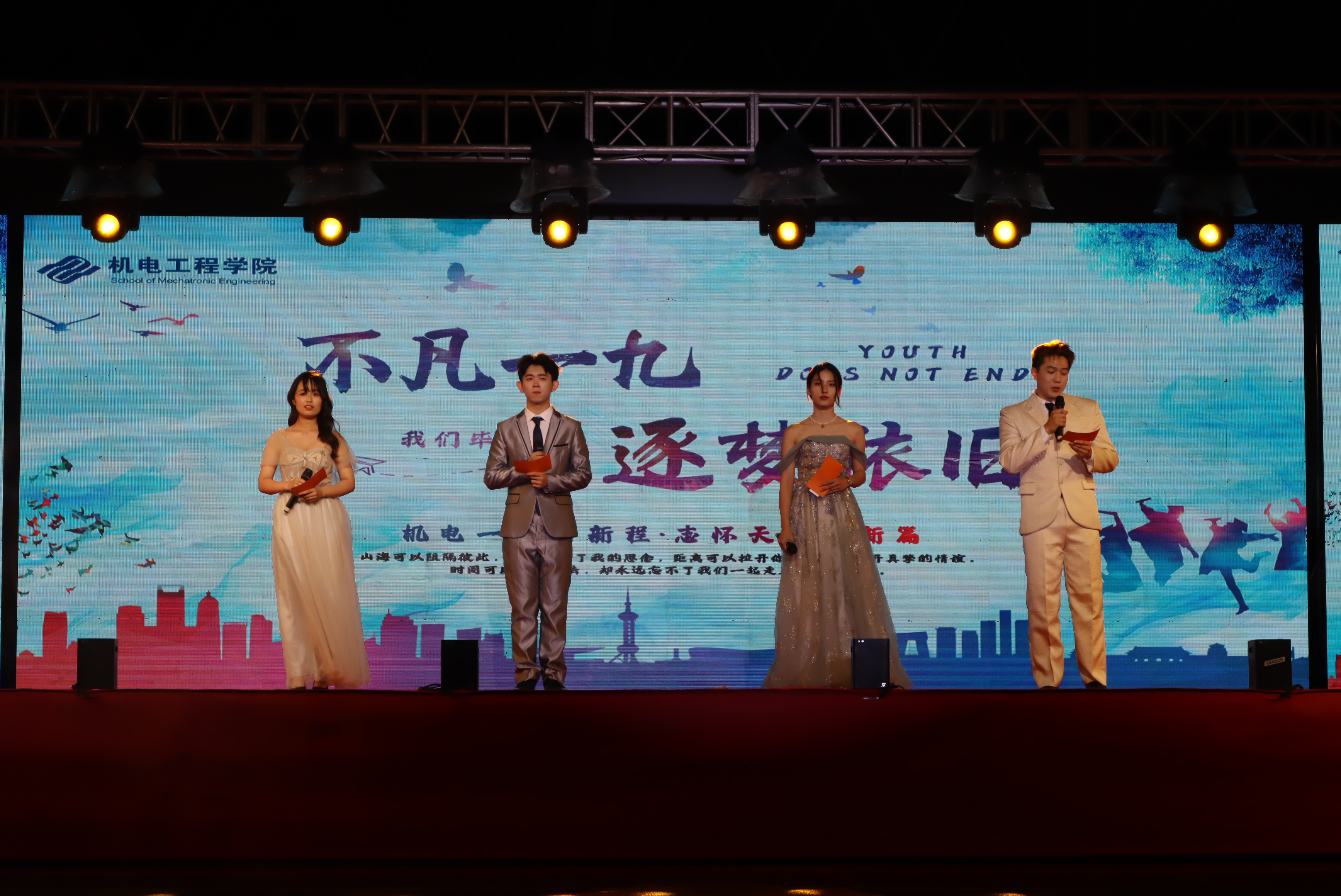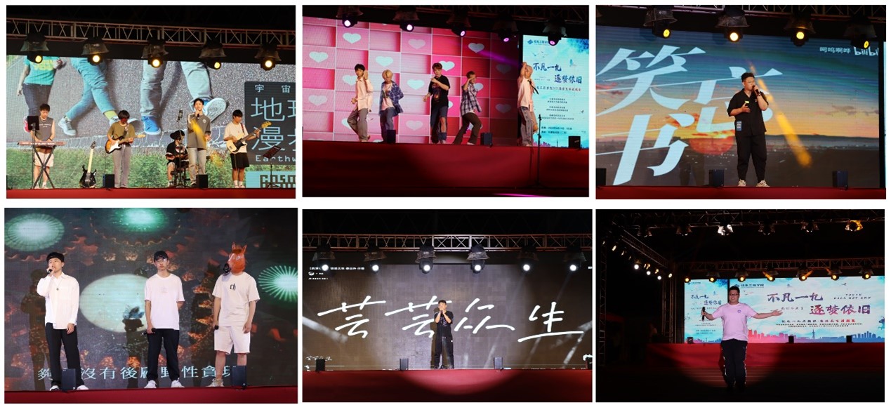 6月14日晚,黑料网 2023届毕业晚会在南湖校区第二田径运动场举行。院长王忠宾、院党委副书记王虎、本科2019级各班班主任、各年级专兼职辅导员出席。晚会由2023届毕业生闫昭宇、胡宇哲、张瑞、胡立阳主持。