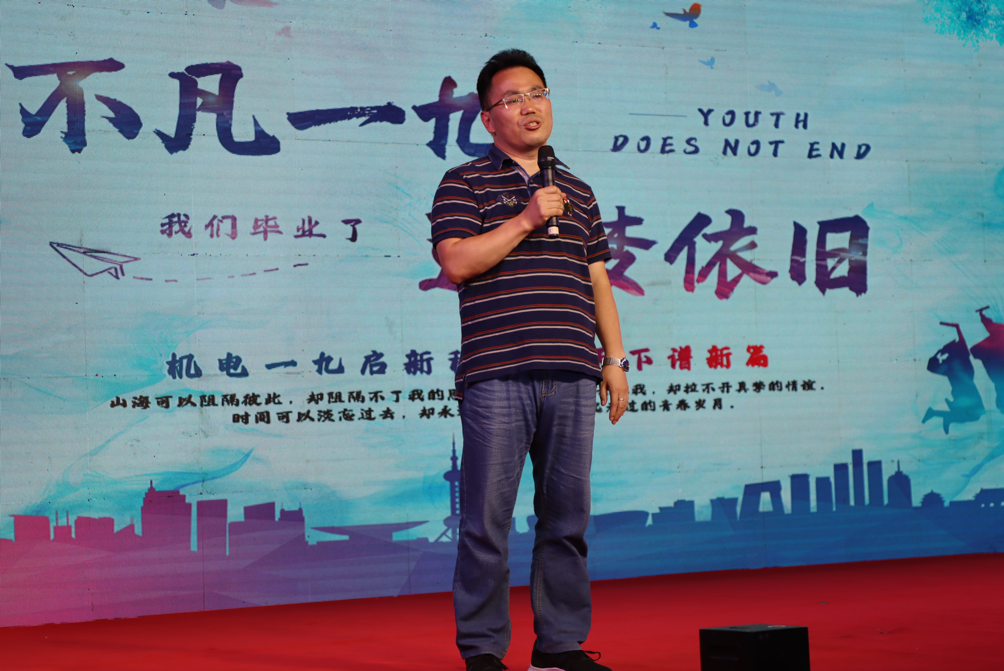本科2019级班主任代表刘新华老师表达了对毕业生的美好祝福和期待。本科2019级辅导员孟凡成老师表达了与毕业生的不舍之情,他随后寄语毕业生要勇于担当时代大任,艰苦奋斗,并借用张载的“为天地立心,为生民立命,为往圣继绝学,为万世开太平”表达了对毕业生的期盼。
