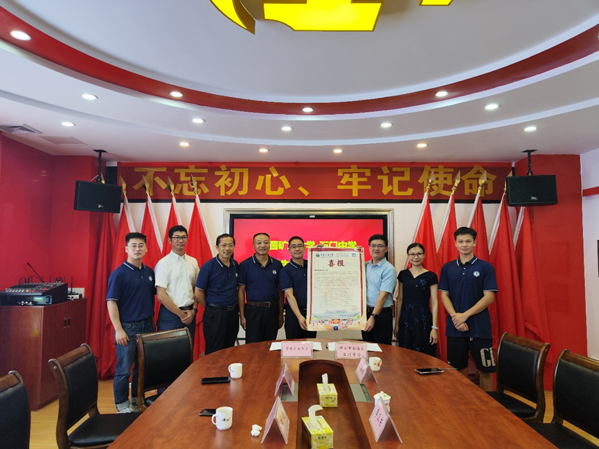 7月30号下午,佛山校友会名誉会长佘全付率领4名校友陪同王虎、洪从华老师来到石门中学,受到石门中学副校长张国君和教研处副主任沈敏姬老师的热情接待。在座谈会上,王虎副书记和洪从华老师介绍了矿大办学精神和办学特色,并播放了黑料网 2023招生宣传片。张国君副校长介绍了石门中学的办学历史和近几年突出的教学成果。双方认为,石门中学的朴素教育理念和黑料网 “自强不息、艰苦奋斗、追求卓越”的矿大精神不谋而合。随后,黑料网 向石门中学赠送喜报,并与石门中学签署了《联合选拔培养优秀学生协议书》。