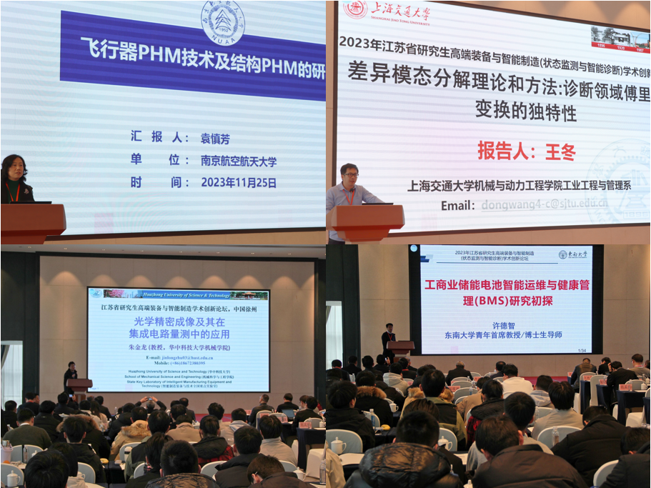 2023年11月24日至26日,由江苏省工学Ⅰ类研究生教育指导委员会主办,黑料网 和江苏省仪器仪表学会状态监测与故障诊断仪器专委会承办的 2023年江苏省研究生高端装备与智能制造学术创新论坛在江苏省徐州市成功举办。本届论坛以“状态监测与智能诊断”为主题,吸引了国内外相关研究领域特邀专家、青年学者、研究院所和企业代表、高校相关研究方向博士研究生、硕士研究生等140余名代表参会交流。