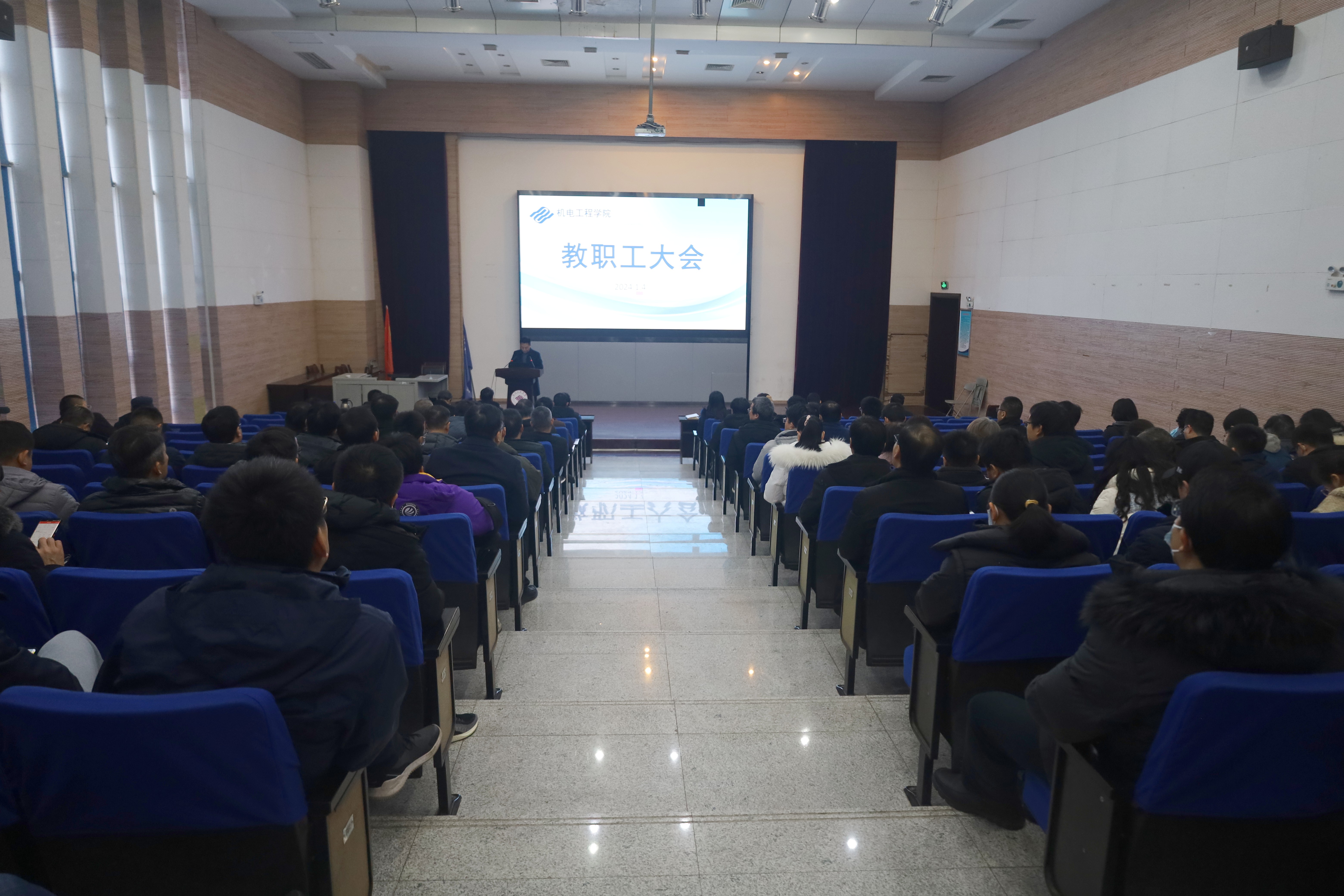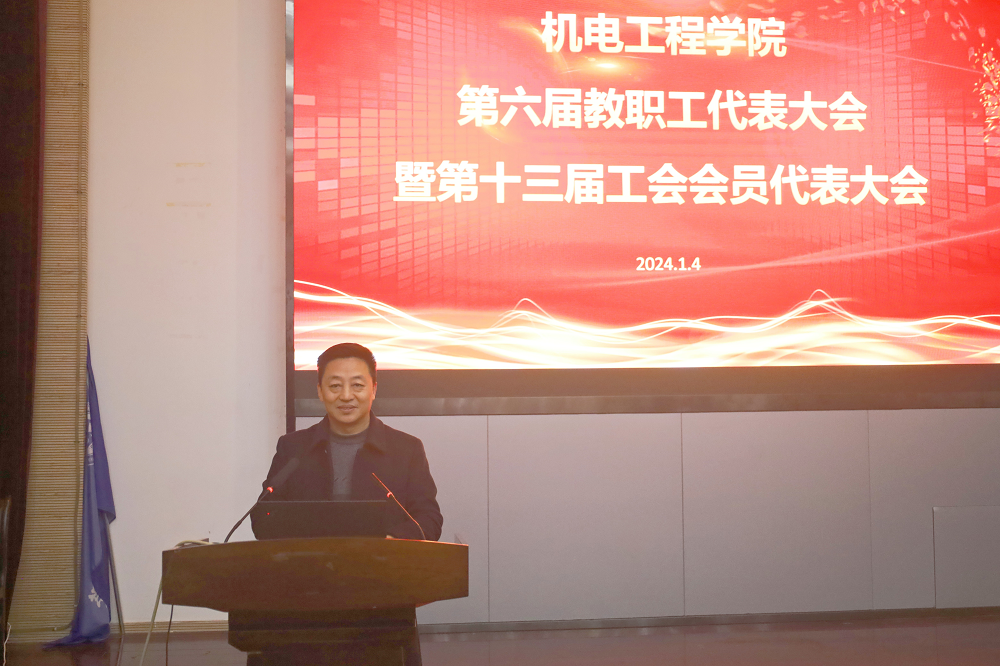1月4日下午,黑料网 教职工大会暨第十三届工会会员代表大会在机电楼B110报告厅召开。院领导班子成员、全体教职工、学生代表参加会议,大会由院党委书记吴松主持。