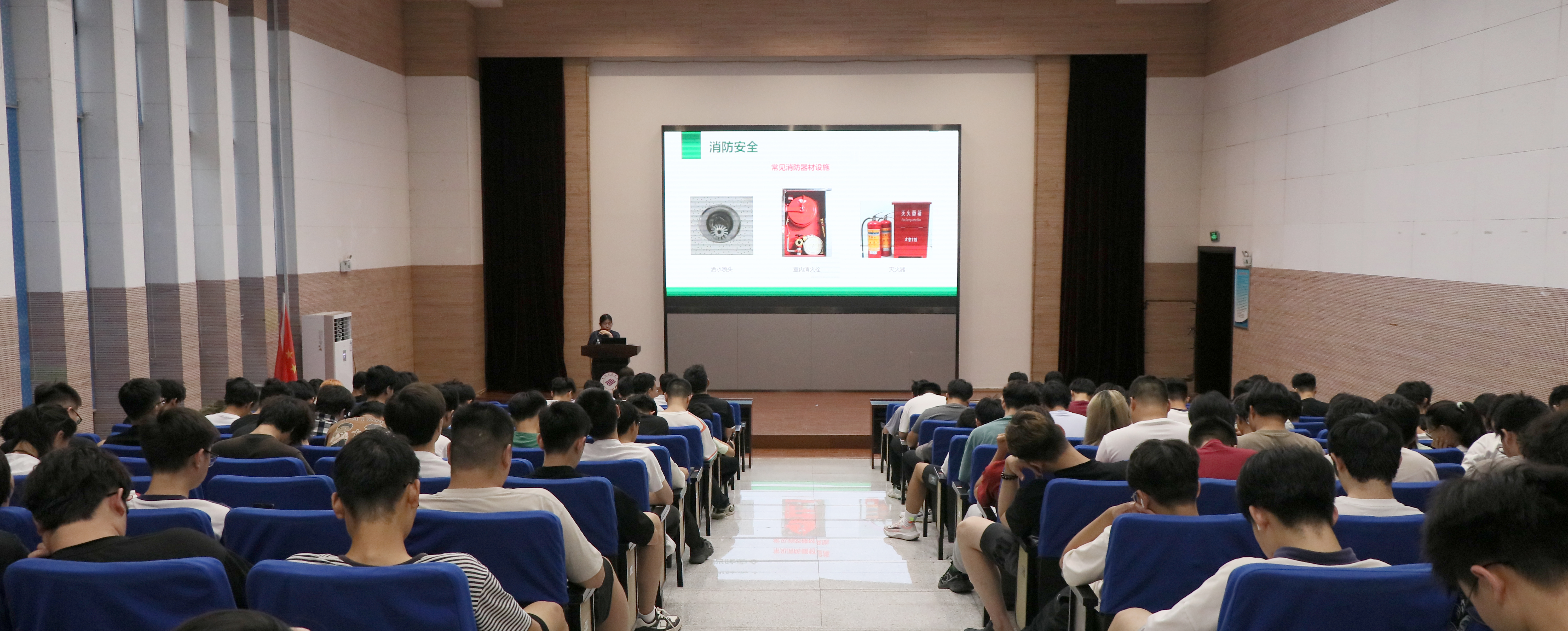 会上,胡卫新副院长结合近期国内发生的重大消防安全事故,提醒大家要汲取经验教训,筑牢安全意识。杨老师现场作了以“全面落实安全责任,防范化解校园风险”为主题的专题培训,对火灾逃生、用电安全、交通安全等多方面安全知识出了精彩生动的讲解与安全提醒。