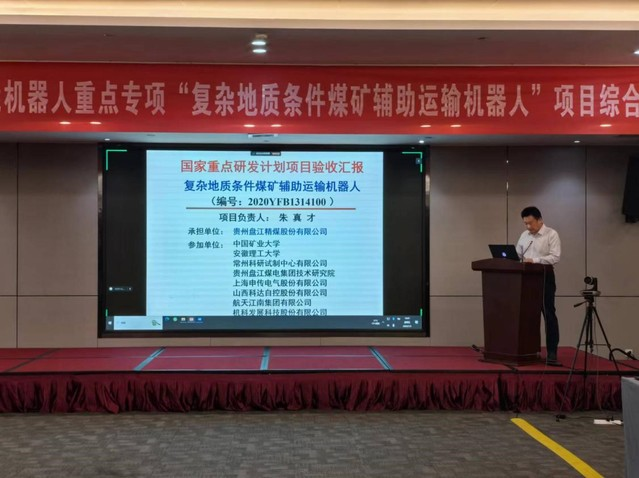 项目负责人朱真才教授从项目基本情况、关键技术创新、考核指标完成情况、人才培养与组织管理、经费执行情况5个方面作了汇报。专家组听取了项目汇报,观看了项目成果现场示范视频,部分专家在山脚树矿地面和井下检查了示范工程现场运行情况,审阅了项目相关资料。专家组认为:项目针对贵州矿区地质构造复杂、巷道断面小、多变坡、多弯道的工况,研究了煤矿井下辅助运输车辆导航定位技术、无人驾驶技术、全矿井人员及物资智能调度技术,研制了电机车运输机器人、单轨吊运输机器人和自动化转载机器人等关键设备,形成了煤矿辅助运输机器人系统,并在山脚树矿开展了示范应用。建议项目通过综合绩效评价。