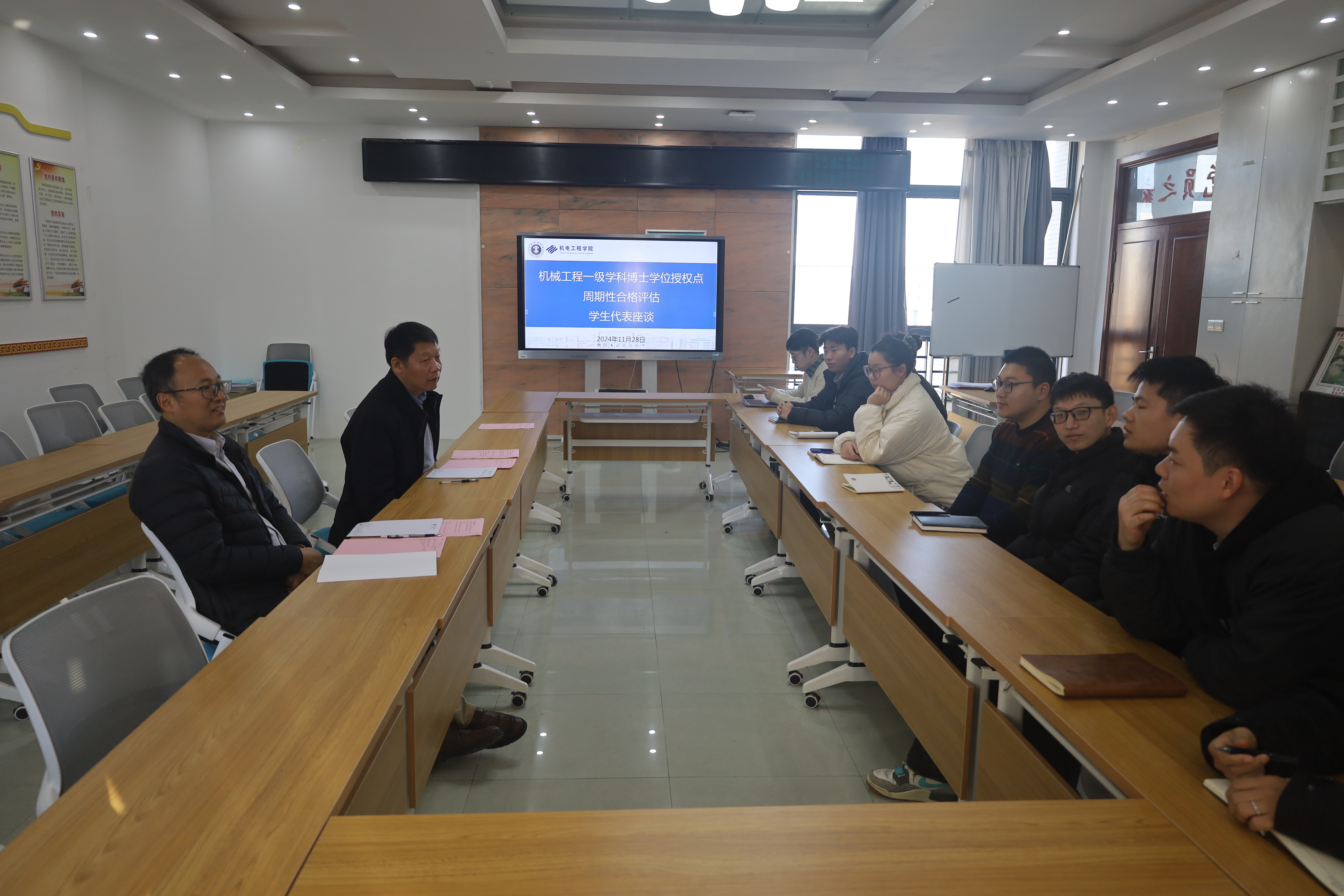 评估专家组在听取汇报的基础上,仔细审查了学位授权点研究生培养相关文件和资料,并与师生代表进行了深入座谈。经过质询、讨论,专家组充分肯定了学院机械工程一级学科博士学位授权点取得的建设成效,一致同意学位授权点通过周期性合格评估。