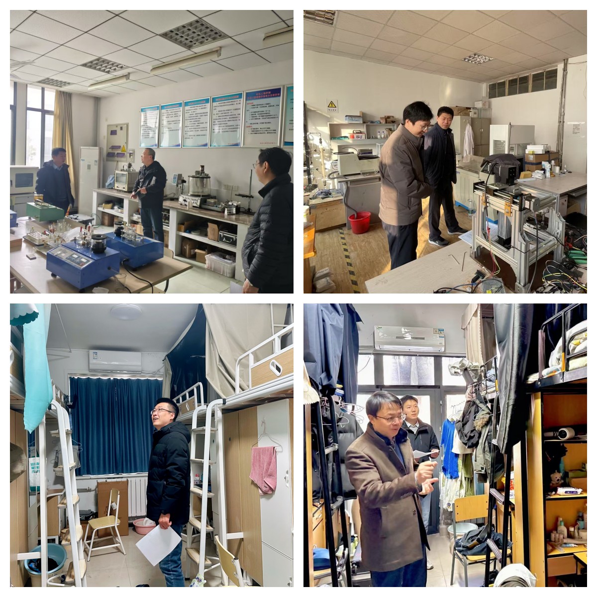 检查组分别来到两校区实验室、学生宿舍、研究生工作室等重点场所,进行了全方位、全覆盖、拉网式排查检查。检查过程中,检查组对存在的隐患和问题进行详细记录,并现场提出整改意见和建议。同时,对存在的突出隐患问题,要求相关部门立即整改,坚决消除各类安全隐患。