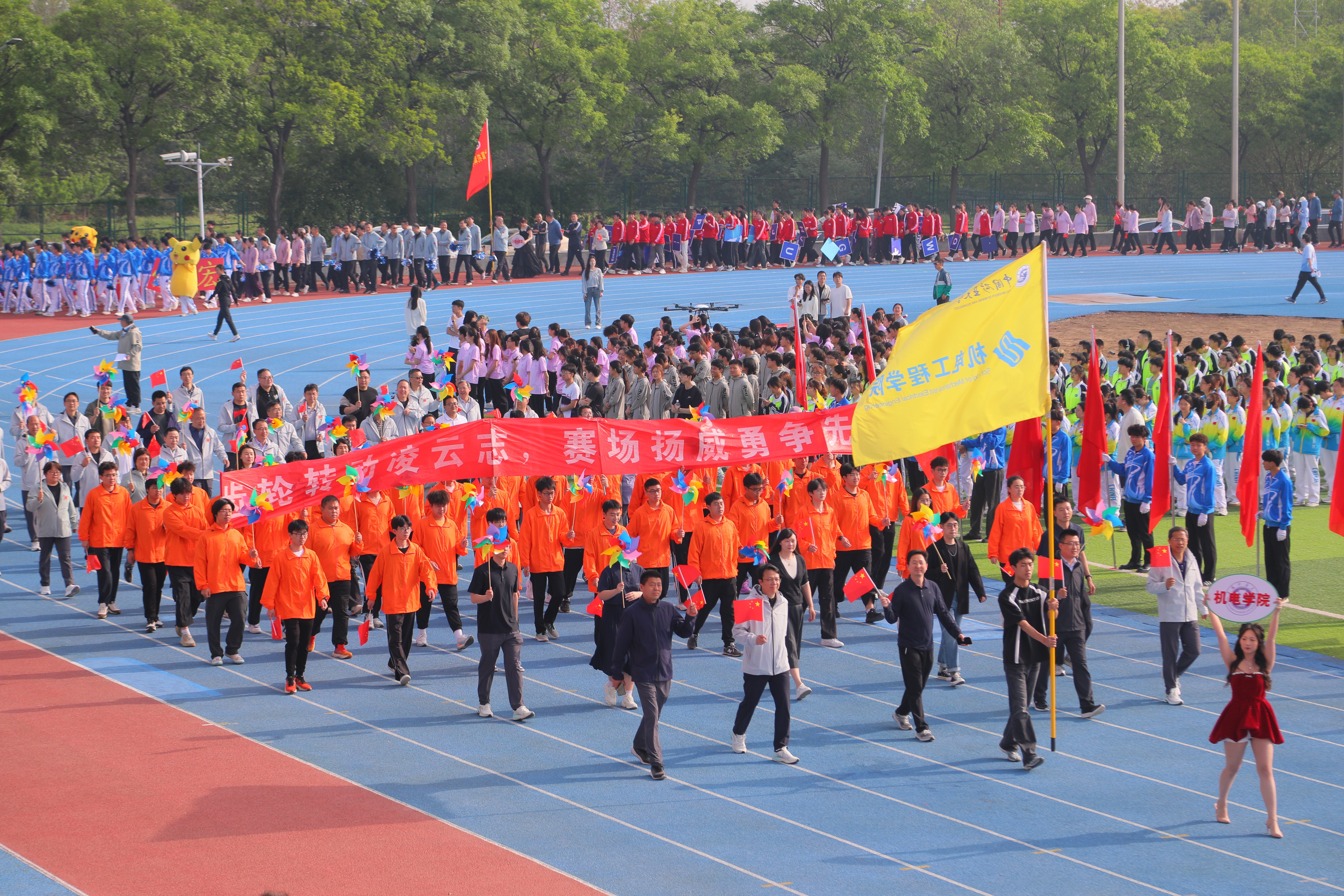 入场式上,学院100余名师生组成的方阵以“齿轮转动凌云志,赛场扬威勇争先”为主题通过主席台,铿锵有力的口号展示出学院师生斗志昂扬的精神风貌。