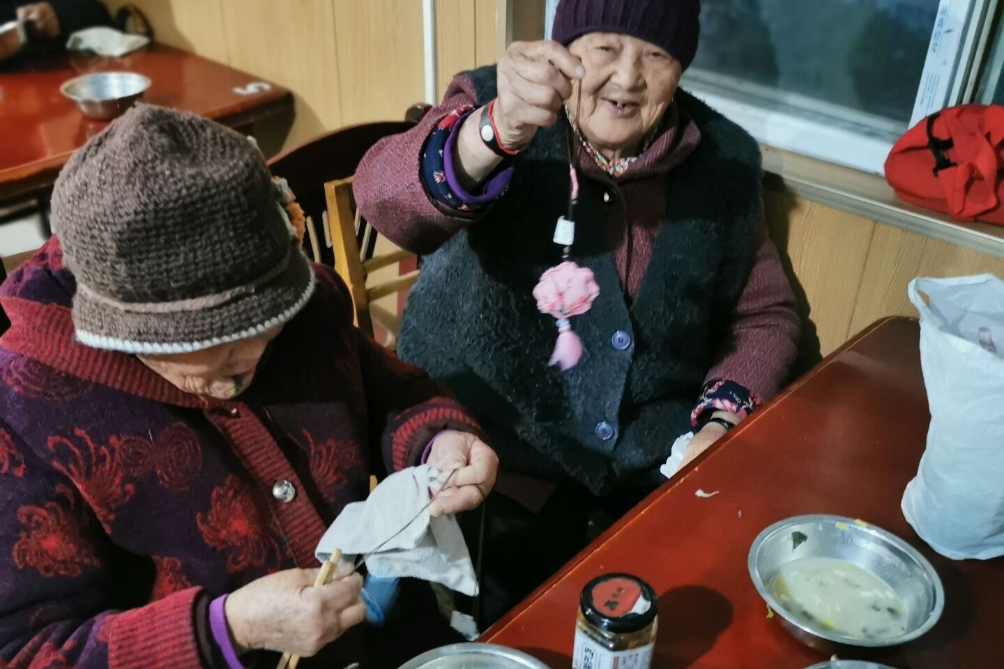 志愿者将香包送给敬老院的老人