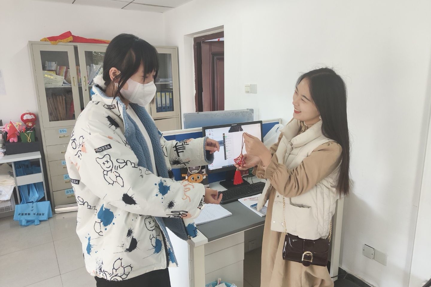 志愿者将香包赠送给老师