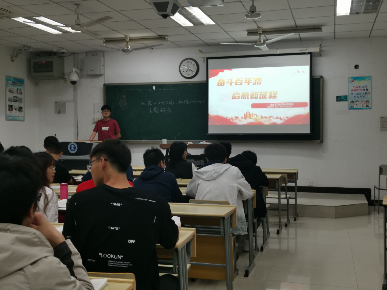 5月17日,机械工程2019-10班与机器人工程2019-2班于博学楼4号楼C206教室联合举行了党史教育主题班会。机械工程2019-10班组织宣传委员胡俊豪主持本次活动,全体同学参与本次活动。