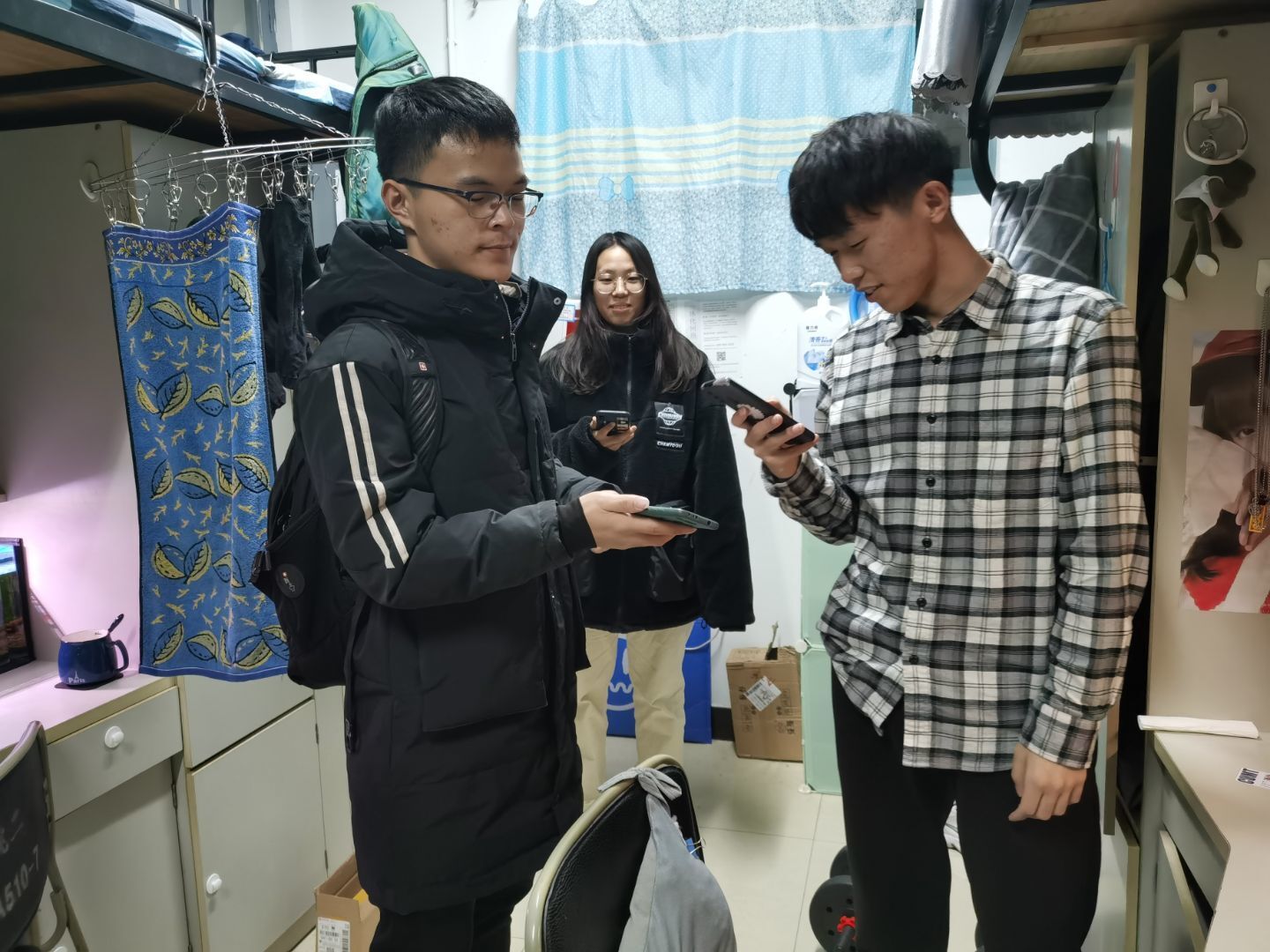 志愿者在宿舍里宣传活动