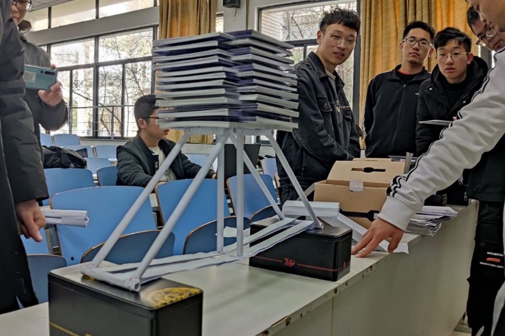 比赛开始前,参赛队伍需要提前用A4纸按照要求来模拟设计桥梁的结构,在材料利用率最高的情况下,通过巧妙的组合、设计达到理想的承重状态。同学们积极热情地投入到每项活动的筹备中,围绕着技术设计的一般过程,灵活运用结构设计知识制作相应的纸桥模型。