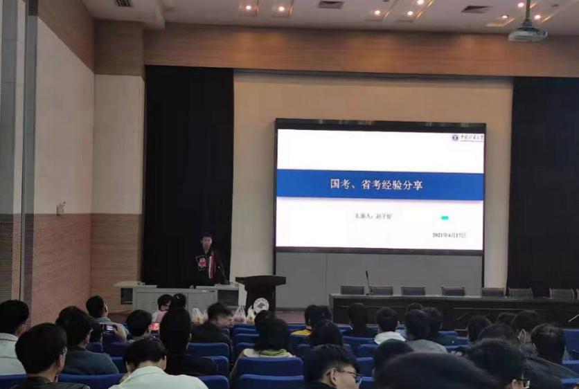 四位研究生代表从就业选择,笔试准备,面试技巧,职业规划等多个方面分享了自己的求职历程和经验。赵迎宾作为就业求职的代表,分享了从研二第二学期到最终确定工作的心路历程与各种面试经历。他特别强调了简历制作的重要性,建议同学们不要急躁,要根据自身优势与劣势找到最适合自己的工作。杨晨作为考博的代表,详细介绍了他考博的缘由、准备、笔试面试等情况,还特别介绍了和博士导师联系与交流的小技巧,他建议有意申请博士的同学要早做准备。赵子舒同学分享了自己考公务员的经历,他提醒想考公的同学们要多多锻炼写作分析能力,合理分配论文撰写和备考的时间。邓维标同学分享了自己考取徐州选调生的经验,他介绍了选调生的相关政策,他认为同学们要理性思考未来发展方向,早做准备。