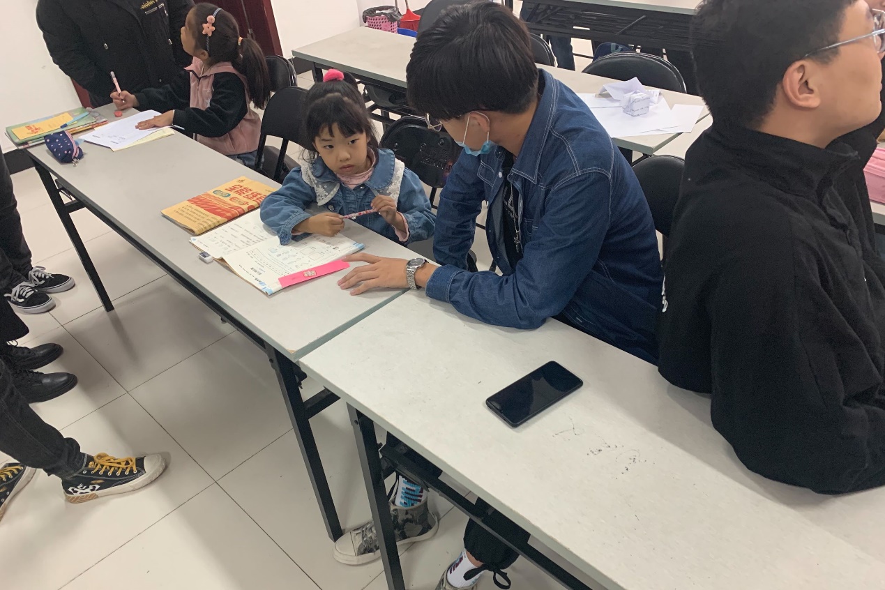本次小课堂招生范围为一年级至六年级的小学生,以辅导学习和培养小朋友兴趣爱好为主要活动内容。上午九点,周末小课堂正式开课,小朋友陆陆续续地进入课堂。参加志愿活动的同学每人负责一至两名小朋友,主要是辅导小朋友的功课。在休息期间,小朋友进入休息间看书放松,负责折纸授课的同学准备上课需要的材料。休息过后,志愿者教小朋友一些简单的折纸手工。小课堂结束后,小朋友们有序离开课堂,与志愿者挥手告别。