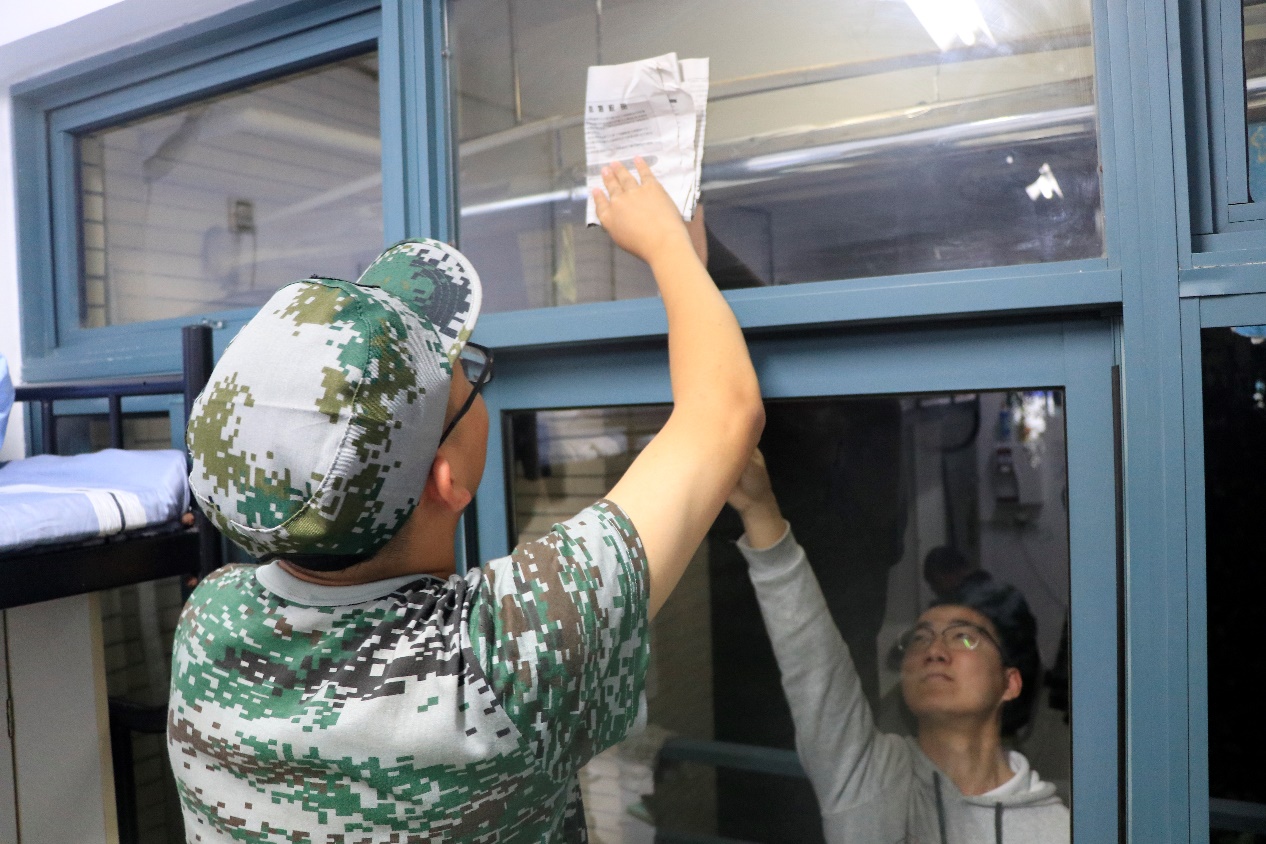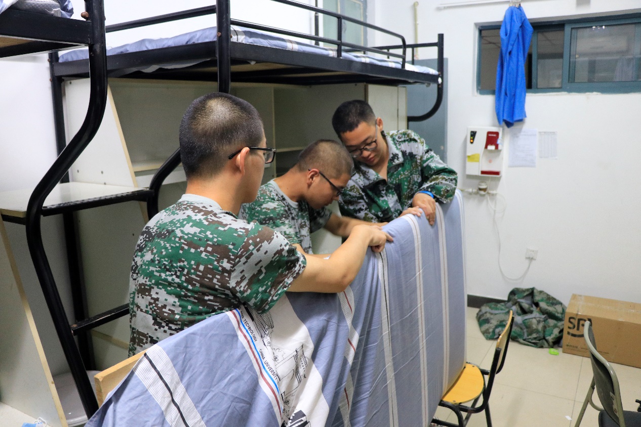 内务整理是军训重要的一部分,也是每一位新生面临的一大挑战。指导内务工作的学生组织部门负责人向新同学讲述了军训内务整理的重要性,并配合新同学开展军训内务整理工作,为之后良好的生活习惯培养和学习工作打下基础。在负责人的指导下,2020级同学们积极投入整理内务工作中。军训内务主要包括整理床铺、门窗清洁、阳台整理、宿舍地面卫生打扫、宿舍墙面清洁及公共区域卫生处理等方面。即使内务整理工作很累很辛苦,但同学们表示并不枯燥,并且从中感受到团结合作的力量。