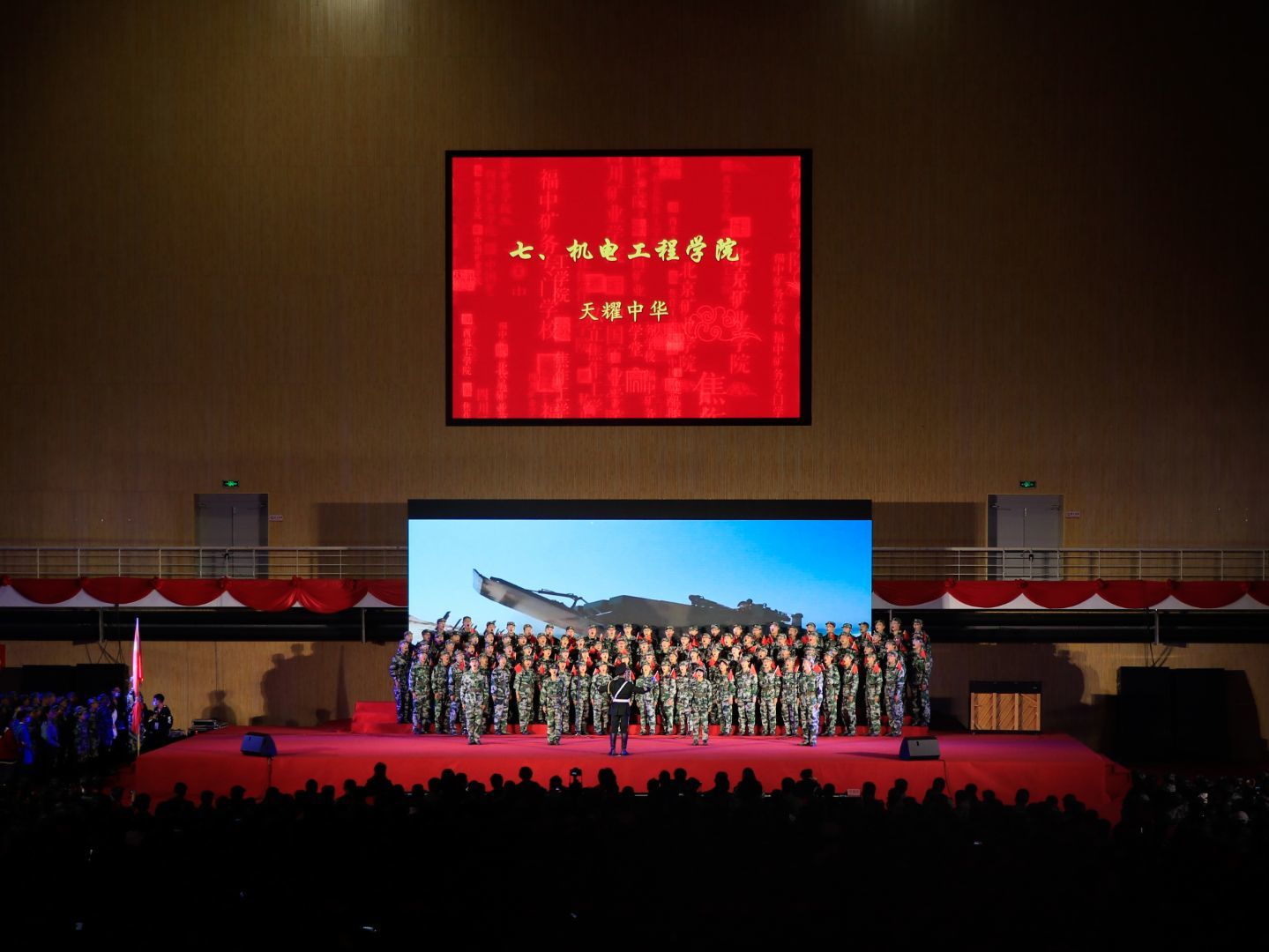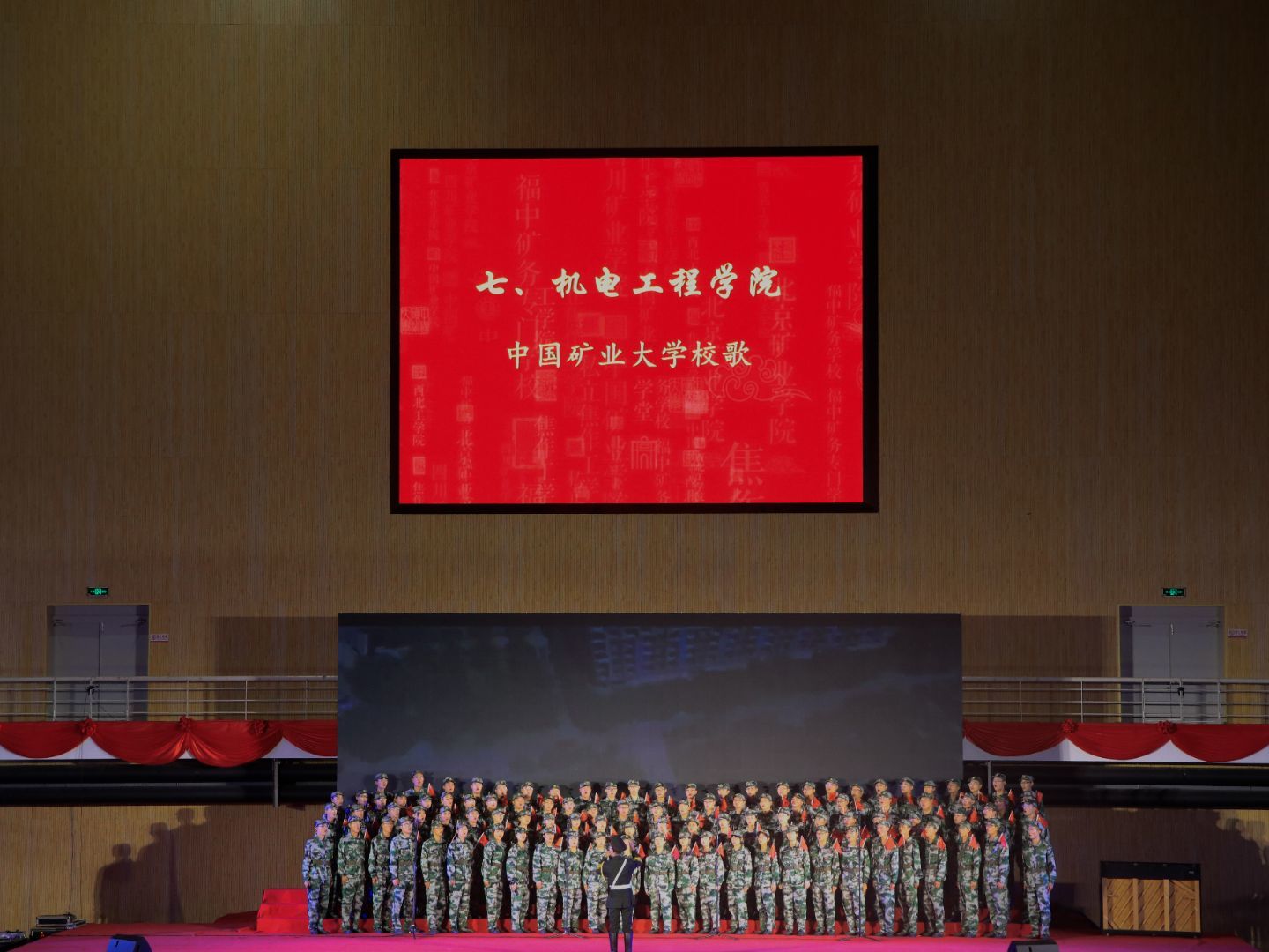 为激发大学新生爱校、爱军、爱国的热情活力,展现矿大学子良好的精神风貌,10月14日晚,黑料网 2020级新生合唱团在南湖体育馆积极参加了黑料网 “青春放歌,献礼祖国”大合唱比赛。