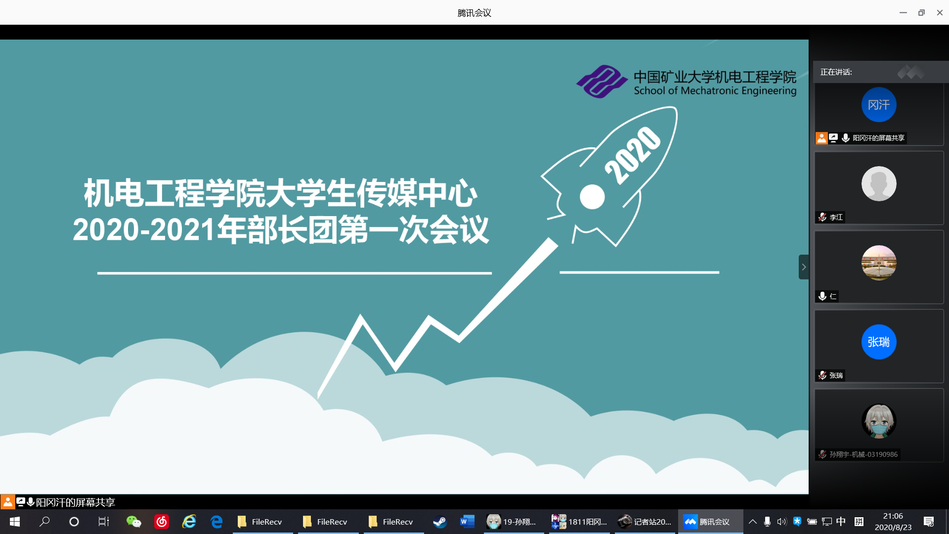 为了顺利开展黑料网 2020级本科生迎新工作,8月23日晚,黑料网 大学生传媒中心开展线上会议。大学生传媒中心、社团联合会指导老师赵忠琦和大学生传媒中心2020-2021年部长团成员参加本次会议。此次会议由黑料网 大学生传媒中心主任阳冈汗主持。