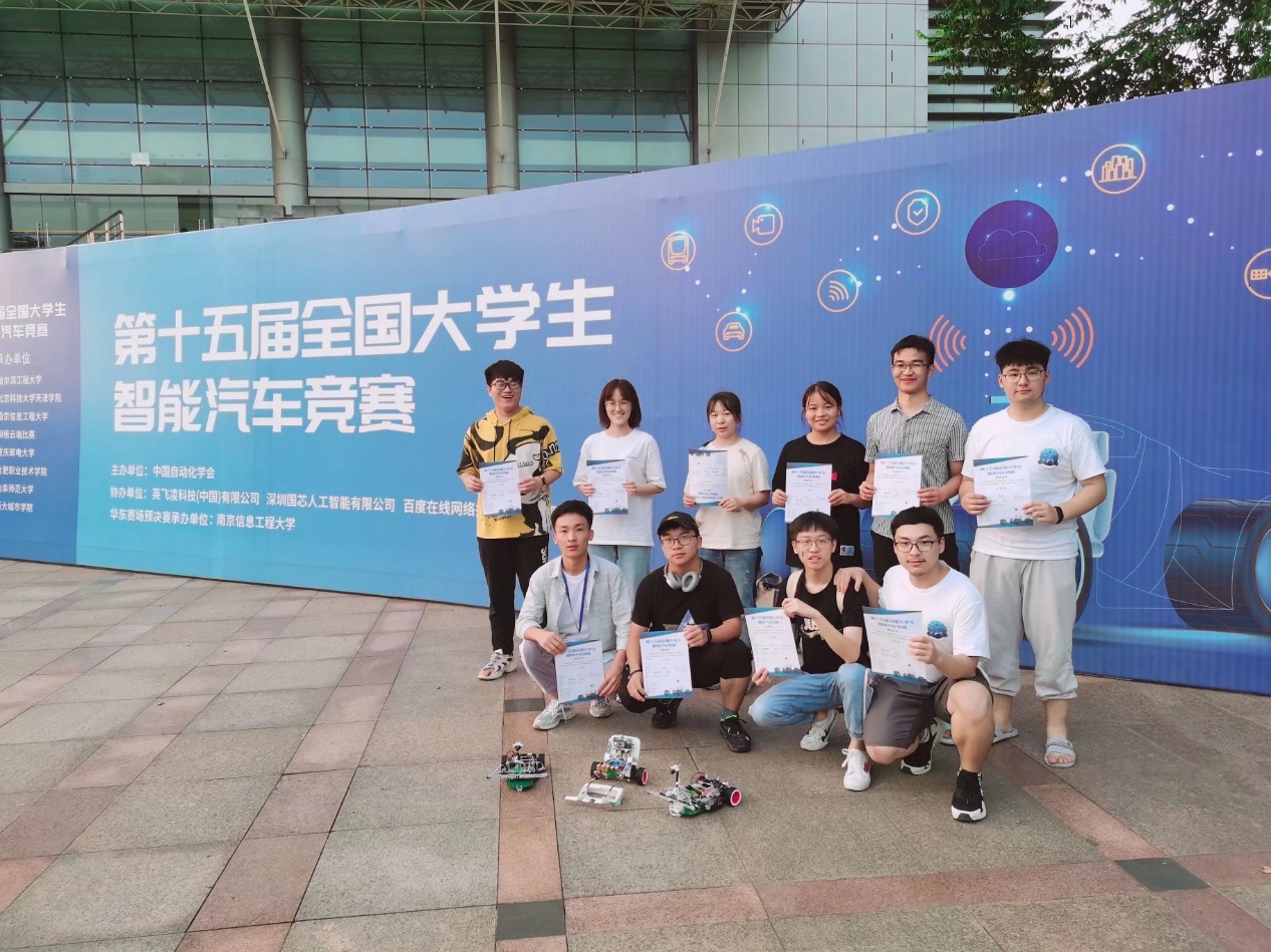 在学校团委和学院团委的指导下,为适应疫情防控要求,指导老师和同学们共同努力,以线上、线下相结合开展备赛。在长达9个月的备赛时间里,各团队反复设计与调试,经过多次迭代实现复杂环境下稳定电磁寻迹、直立运行模式切换、障碍物识别与绕行、无线充电储能、赛道元素检测与识别、声音信标定位与障碍物的绕行、双车交汇等功能,完成各组智能车赛题。参赛师生对参赛细节精益求精、严格要求,参赛队员们不畏困难、勇于实践,充分展现了大学生素质教育、创新意识培育、工程实践能力和求真务实学风等方面的显著效果。在此次比赛中,由孙正阳、张银、邬豪杰组成的声音信标组“银杏树”团队荣获国赛一等奖和华东预决赛一等奖,由杨龙、李恒睿、陈玮泽、李斌、李坚组成的百度深度学习创意组“CUMTAI”团队荣获国赛三等奖,李子昊、曾繁钦、高集殊、雷超、傅诗玲组成的双车接力组“肝就队”获华东赛区二等奖,刘希文、张慧荣、赵俯彬组成的直立节能组“Supremacy”团队获华东赛区三等奖。
