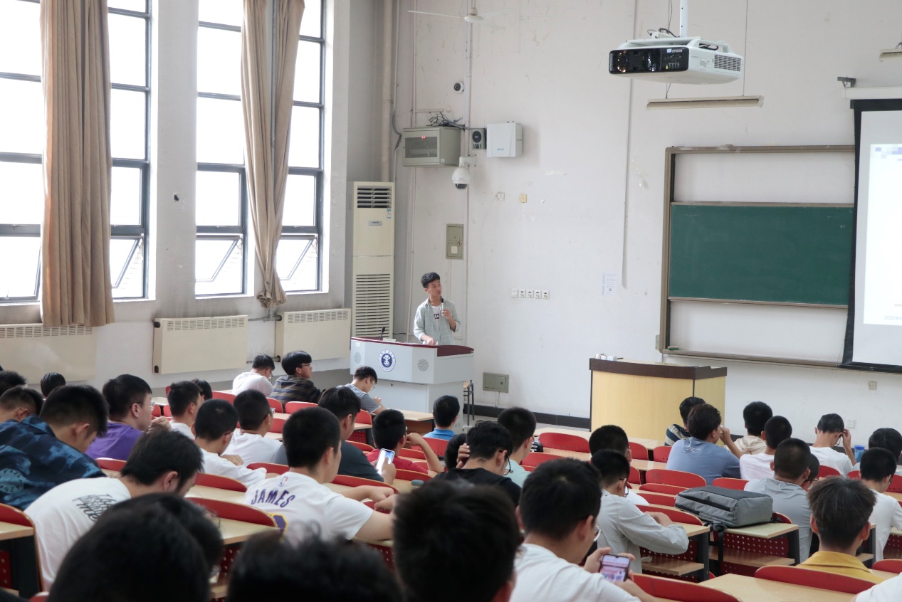 宣讲会上,高集殊同学为同学们从总体介绍了柴油机拆装大赛的参赛流程,希望越来越多的同学们加入到科技创新赛事中。他从柴油机的基本知识、柴油机的机械原理等方面详细讲解,让同学们更加深入地了解柴油机的构造,并分享了自己参加比赛的经验。马铭楷同学为同学们介绍了柴油机的拆装流程,讲解了柴油机拆装的基本原则:从上到下、从外到内、从简到烦;分工合作、摆放整齐、安全第一,同时他还强调了柴油机拆装大赛相关的注意事项。陈沛儒为同学们播放了往届柴油机国家级比赛的视频,让大家对柴油机拆装有了更深的了解。