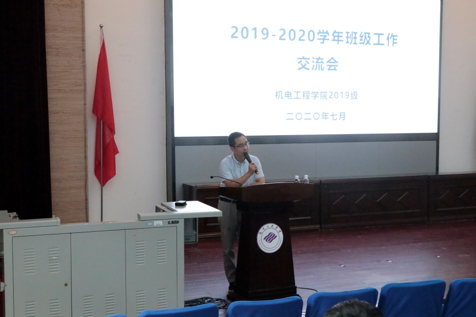 为确保学生班级工作顺利开展,引导班干部积极发挥班级负责人作用,7月13日下午,机电学院2019-2020学年班级工作交流会在机电楼报告厅举行。机电学院党委副书记王虎,2019级辅导员孟凡成,2019级兼职辅导员薛详以及2019级全体班干部参加本次交流会。