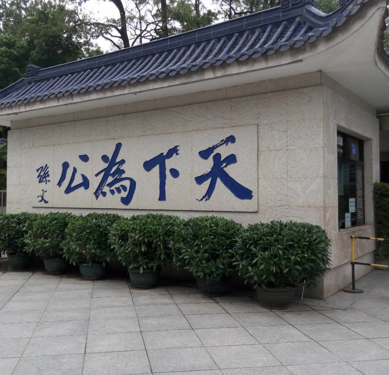 这是一面题“天下为公”字样的墙,我想这应该是孙中山先生革命想要达到的伟大理想,孙中山先生“天下为公”深邃而广阔的思想,我现在还无法深入理解。